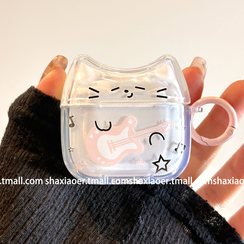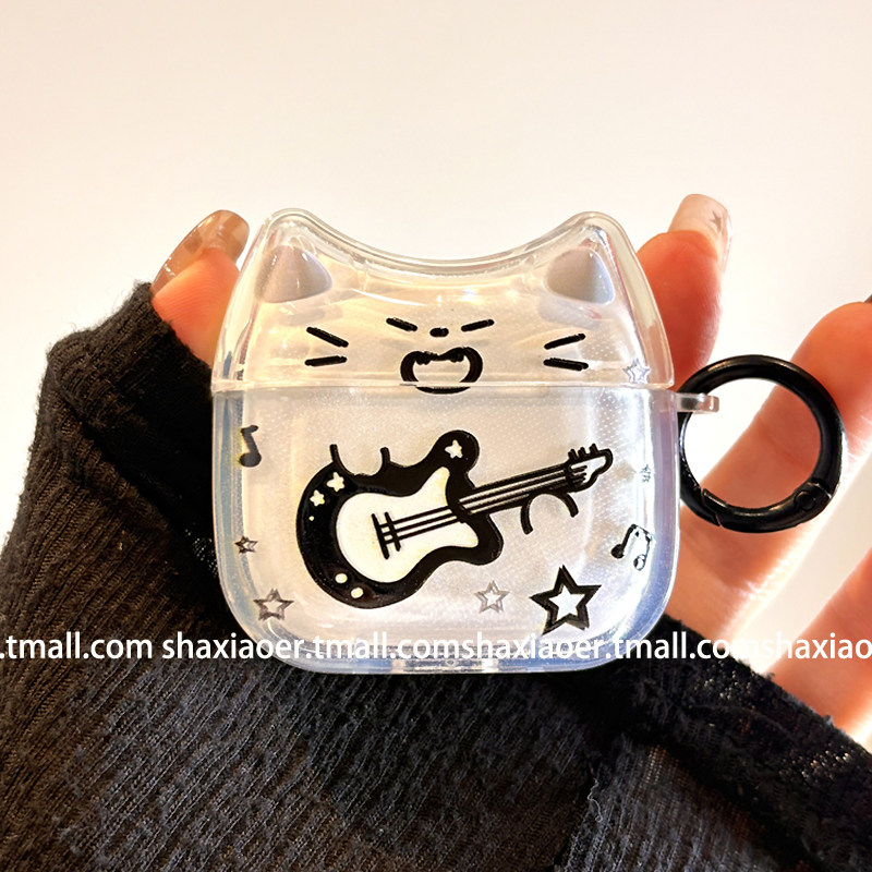 可爱吉他猫咪情侣适用airpodspro3保护套新款 airpods4耳机套三代pro2苹果无线蓝牙耳机保护套耳机保护壳女款