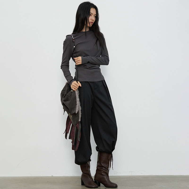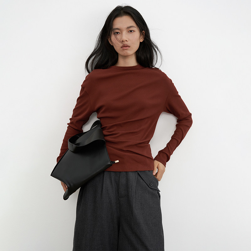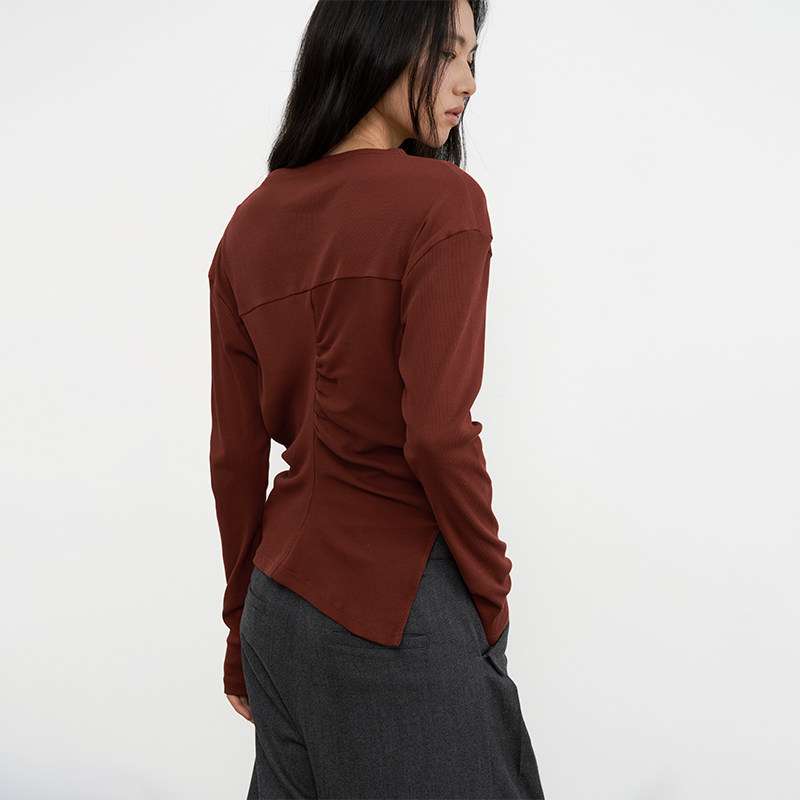 高弹力不规则褶皱层次内搭上衣 女秋季 SAMEFLOW 半高领针织打底衫