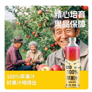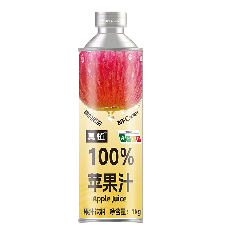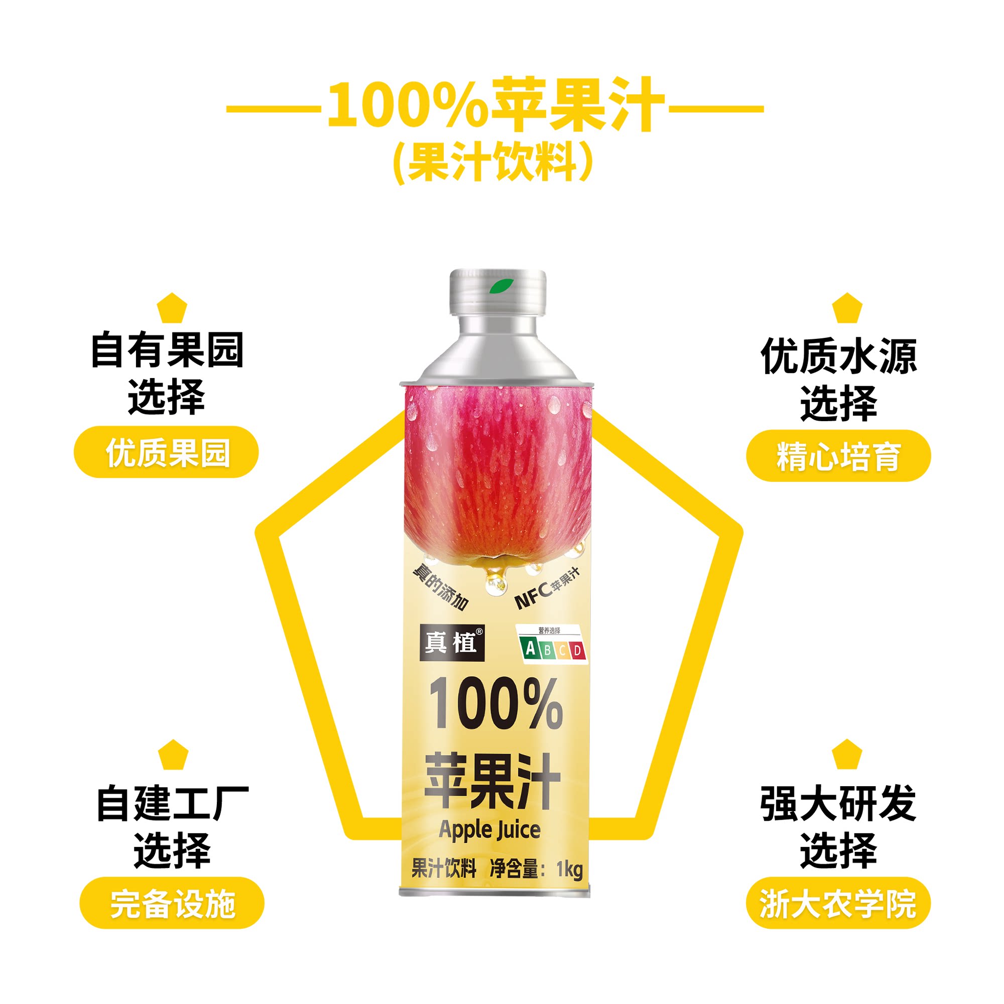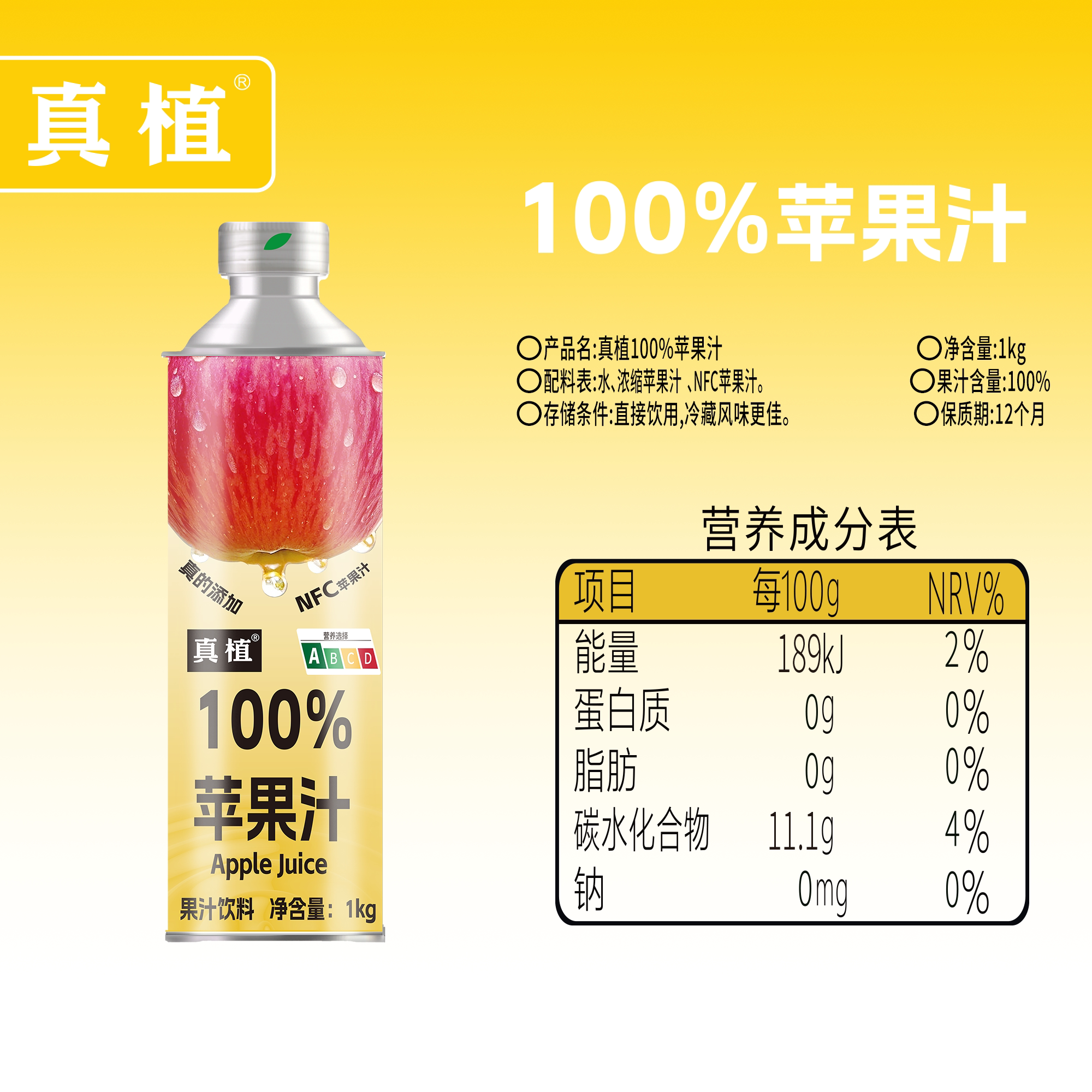 真植100%果汁1kg 纯果汁苹果汁果味饮料整箱批发 6瓶铁罐装