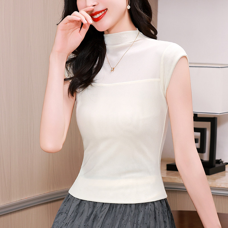背心高级感内搭小衫 半高领网纱打底衫 无袖 新款 蕾丝上衣 女2026秋季