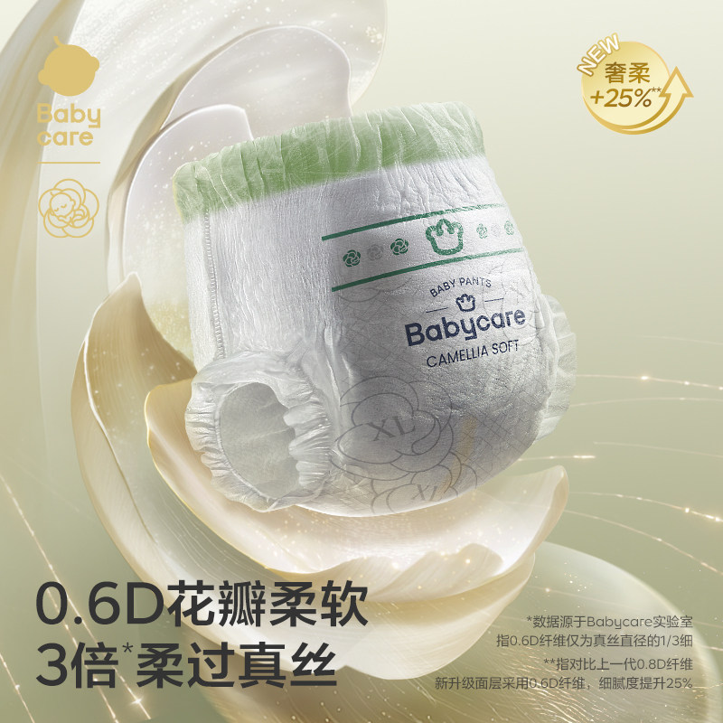 轻柔婴儿尿不湿NB 拉拉裤 babycare山茶花纸尿裤 3XL 加量箱装