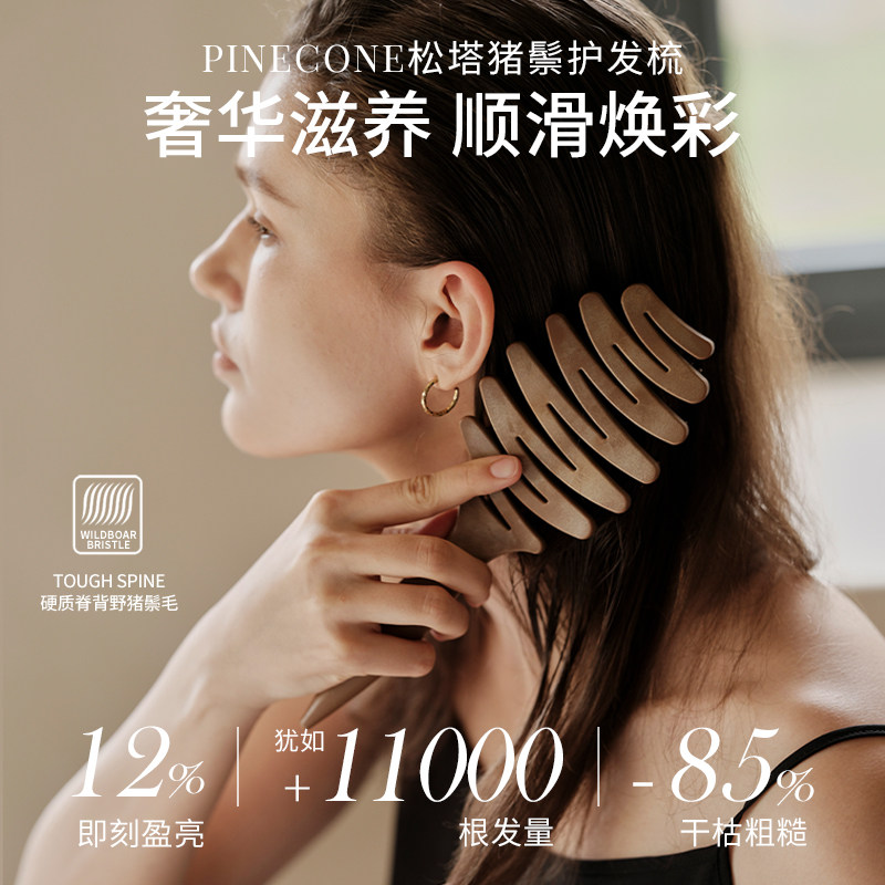松塔猪鬃按摩梳气垫梳女 1日早10付定 KRRAMEL 交个朋友先加购