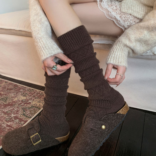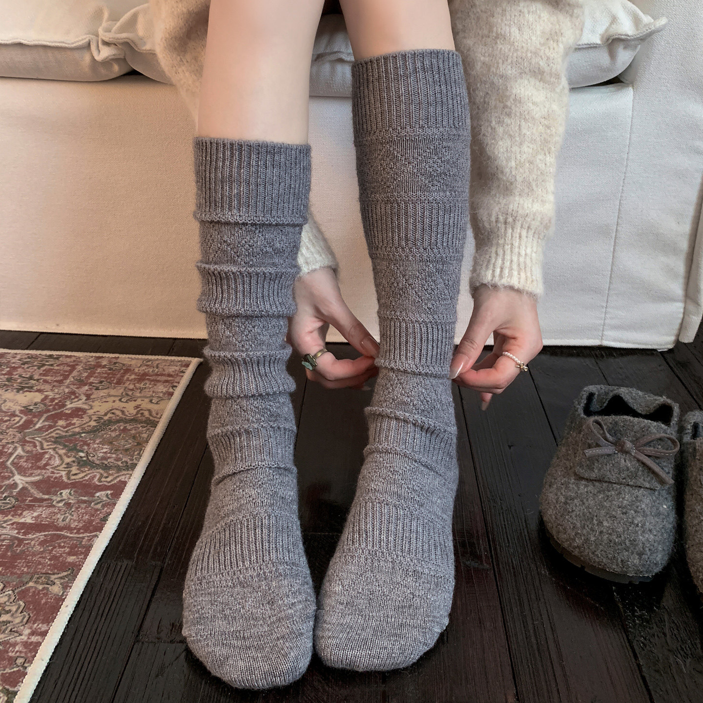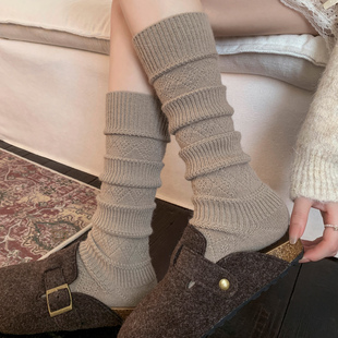 民族风针织中筒袜女堆堆袜分段显瘦灰色宽松小腿袜子保暖2025新款