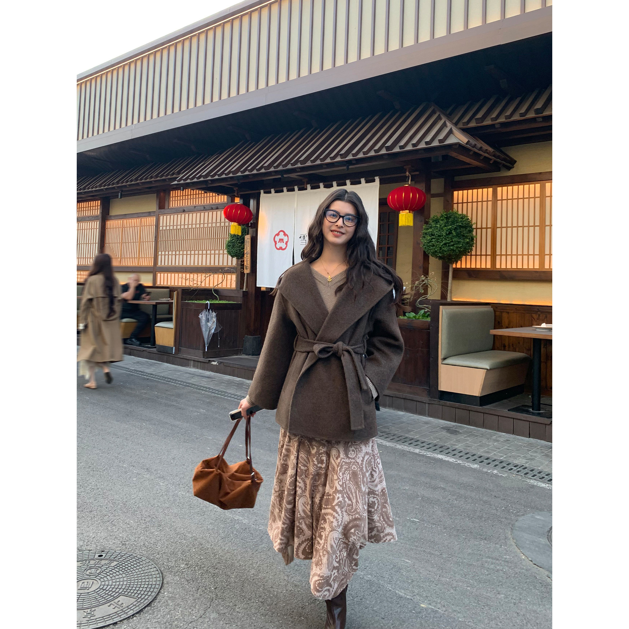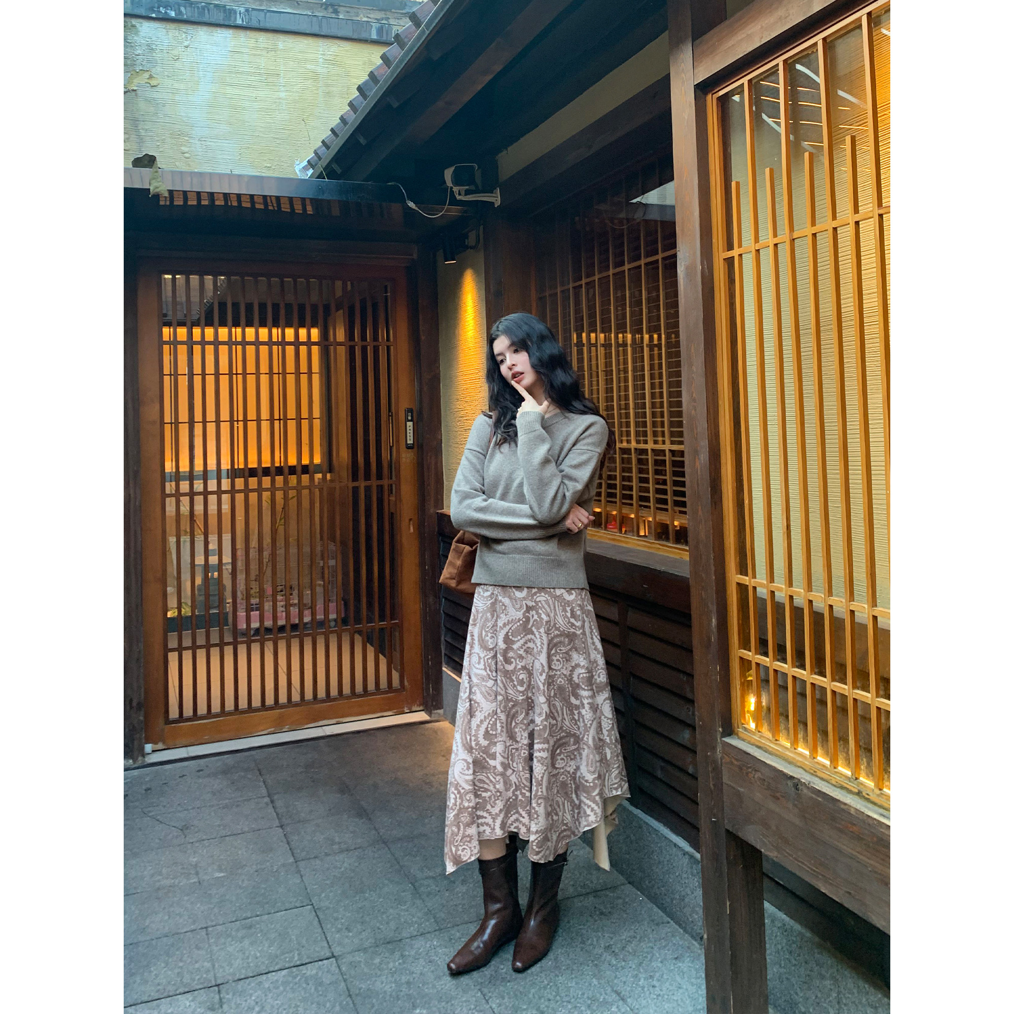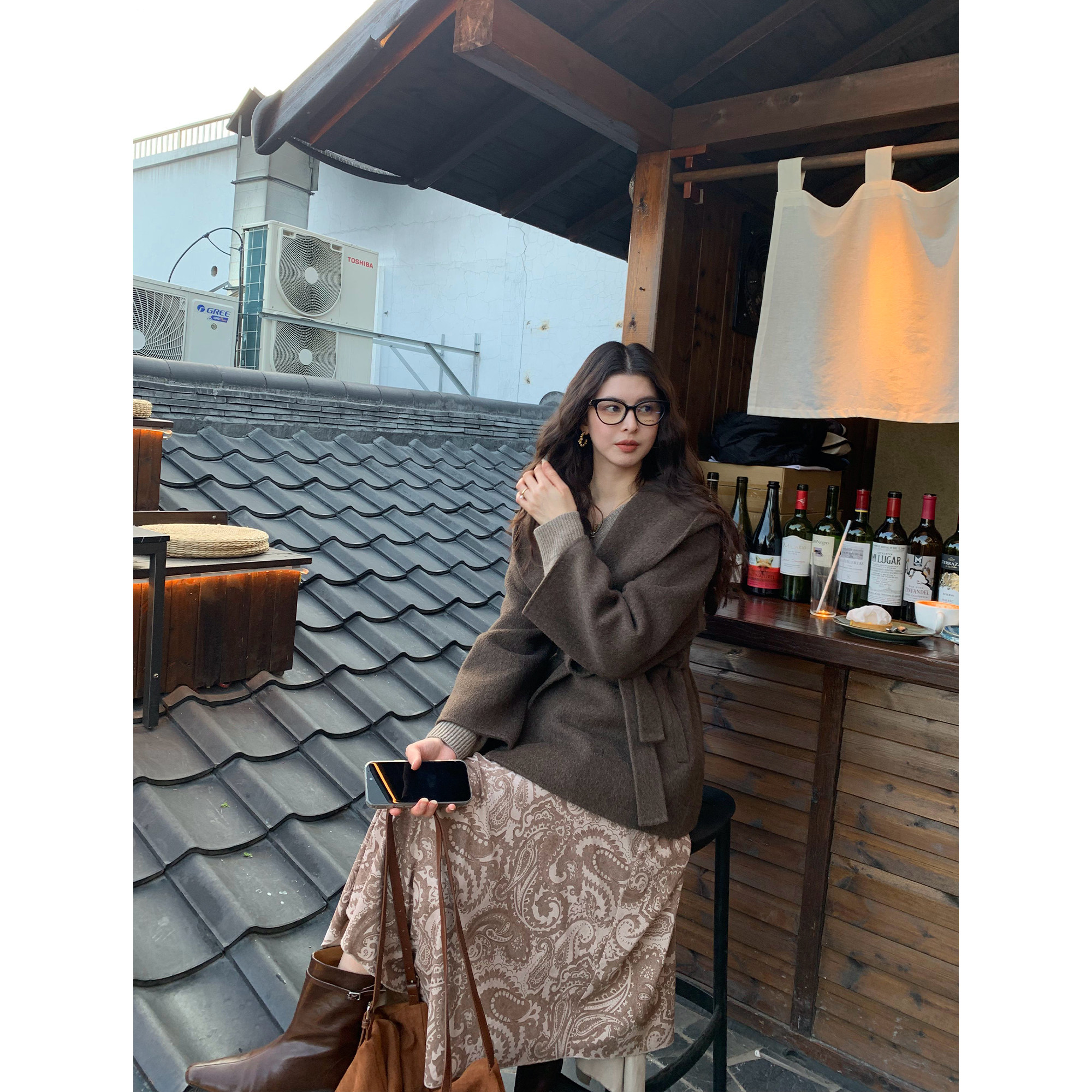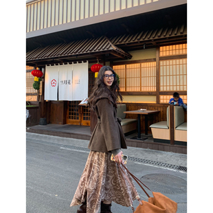 复古咖底腰果花半身裙绒面中长裙 南意漫步 pusumede 现货7折