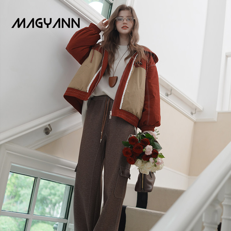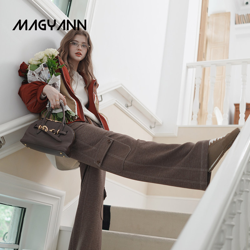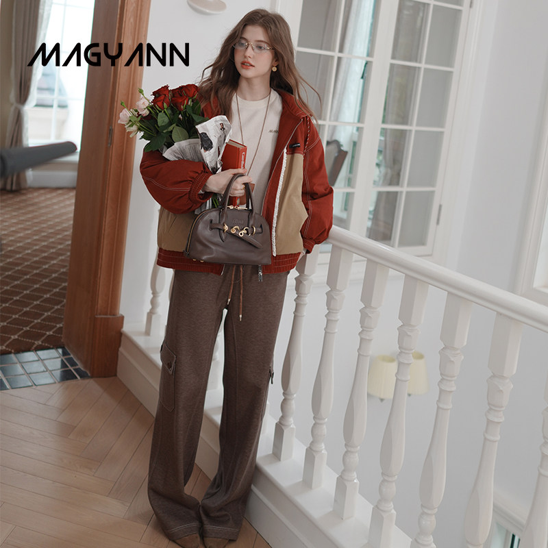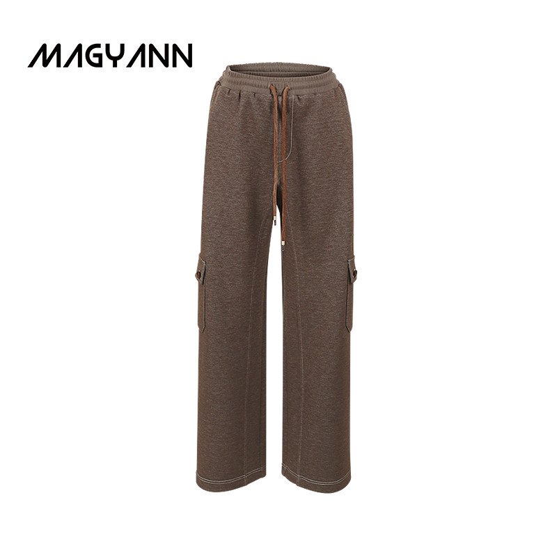 长裤 Magyann设计师原创2025秋抽绳口袋撞色流线休闲裤 布朗尼