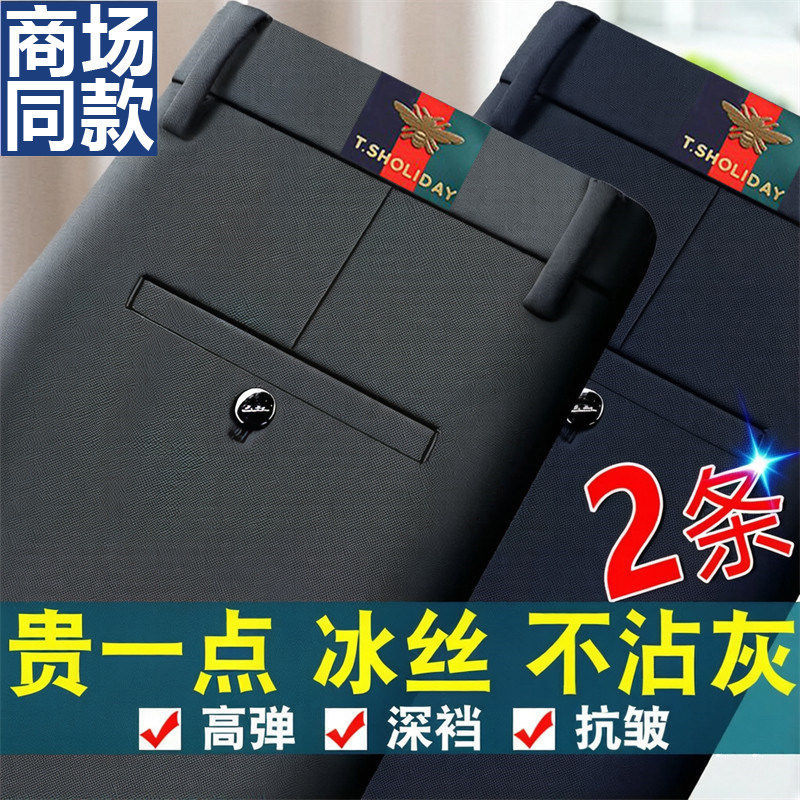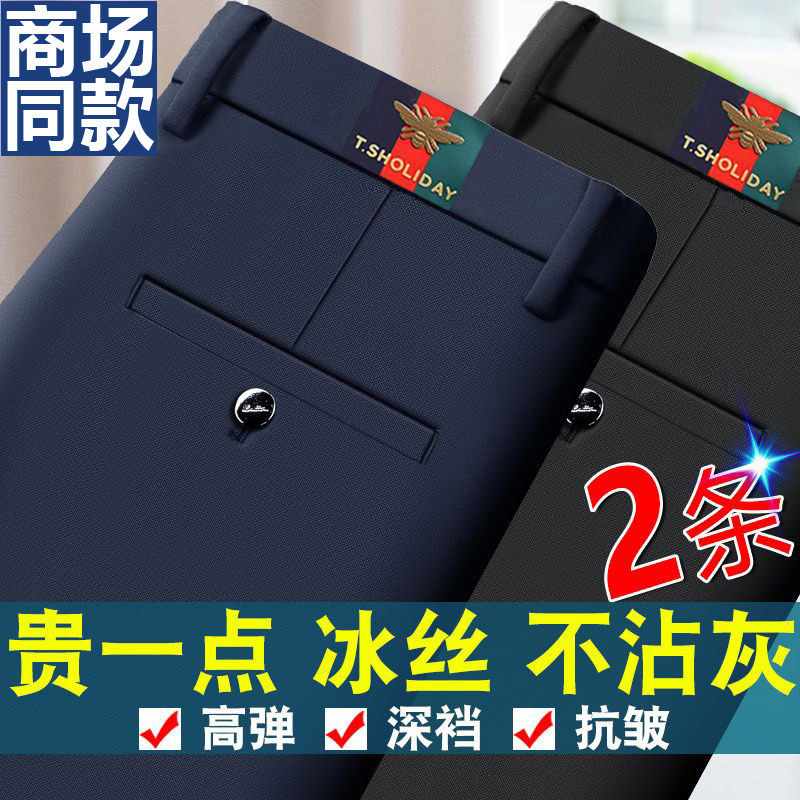垂顺免烫抗皱中年商务宽松男西裤 春夏薄款 休闲裤 薄款 子 弹力男士