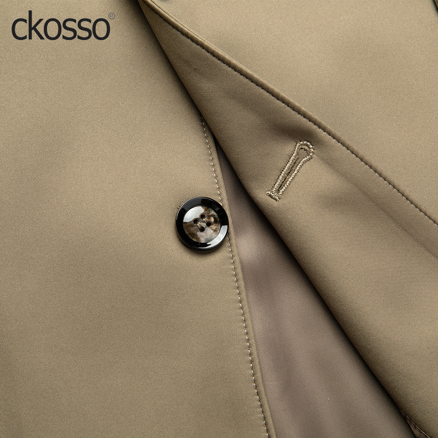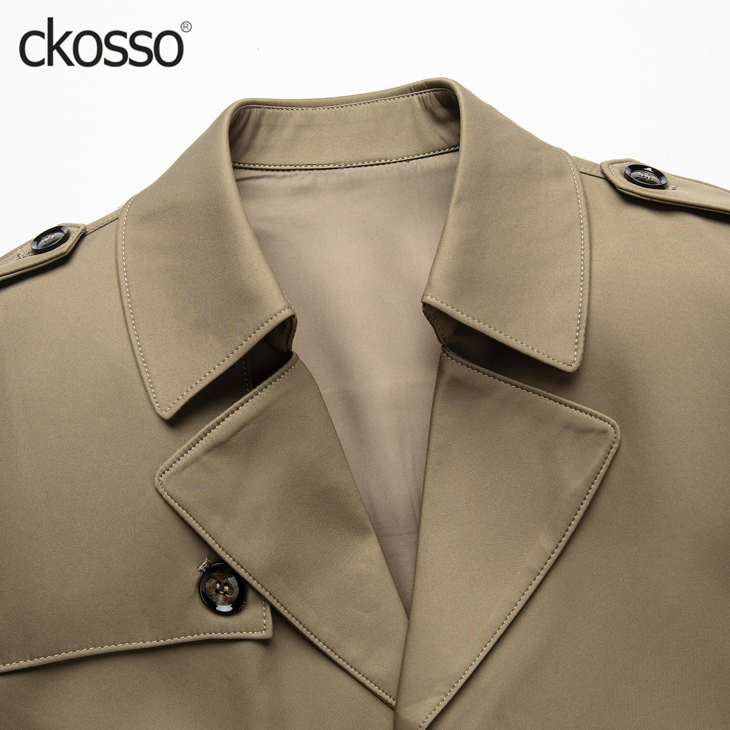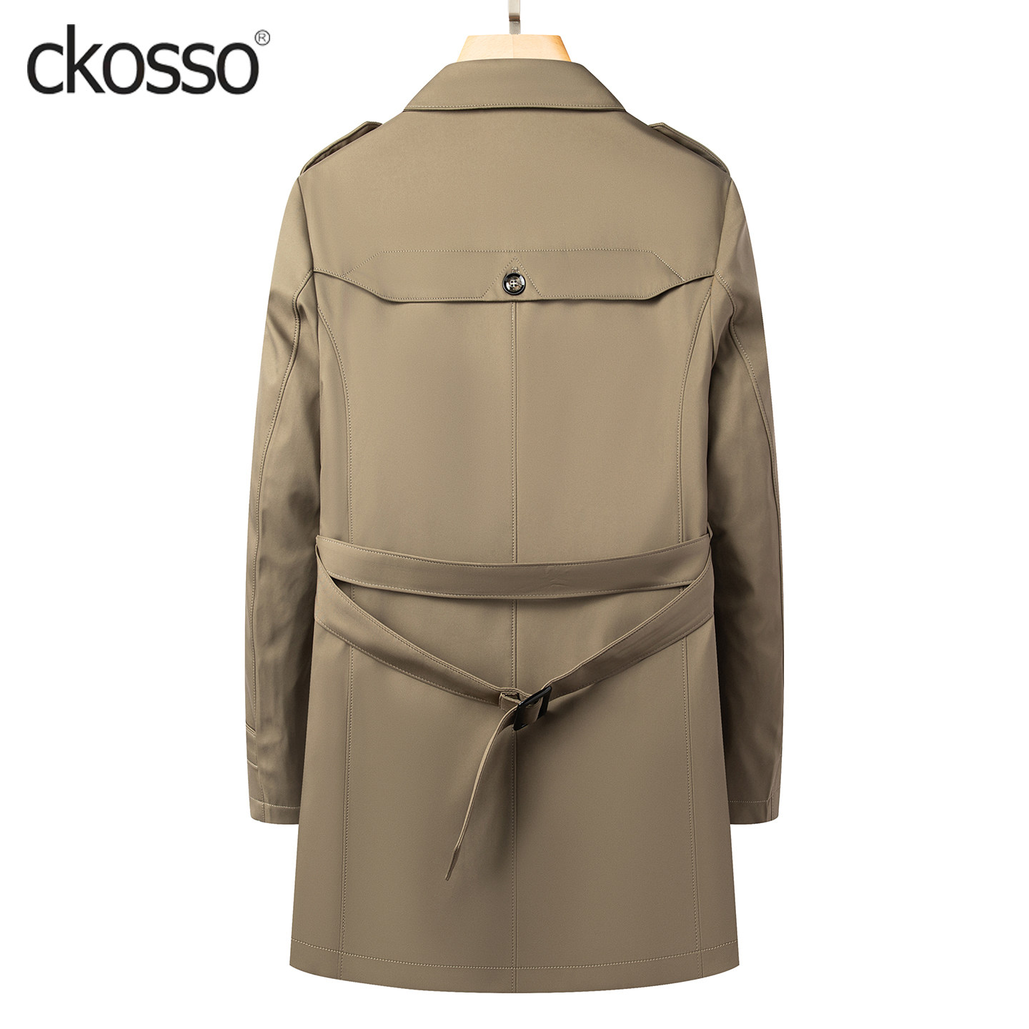 2026新款 时尚 中长款 系扣腰带卡其加大码 春秋休闲外套 流行风衣男士