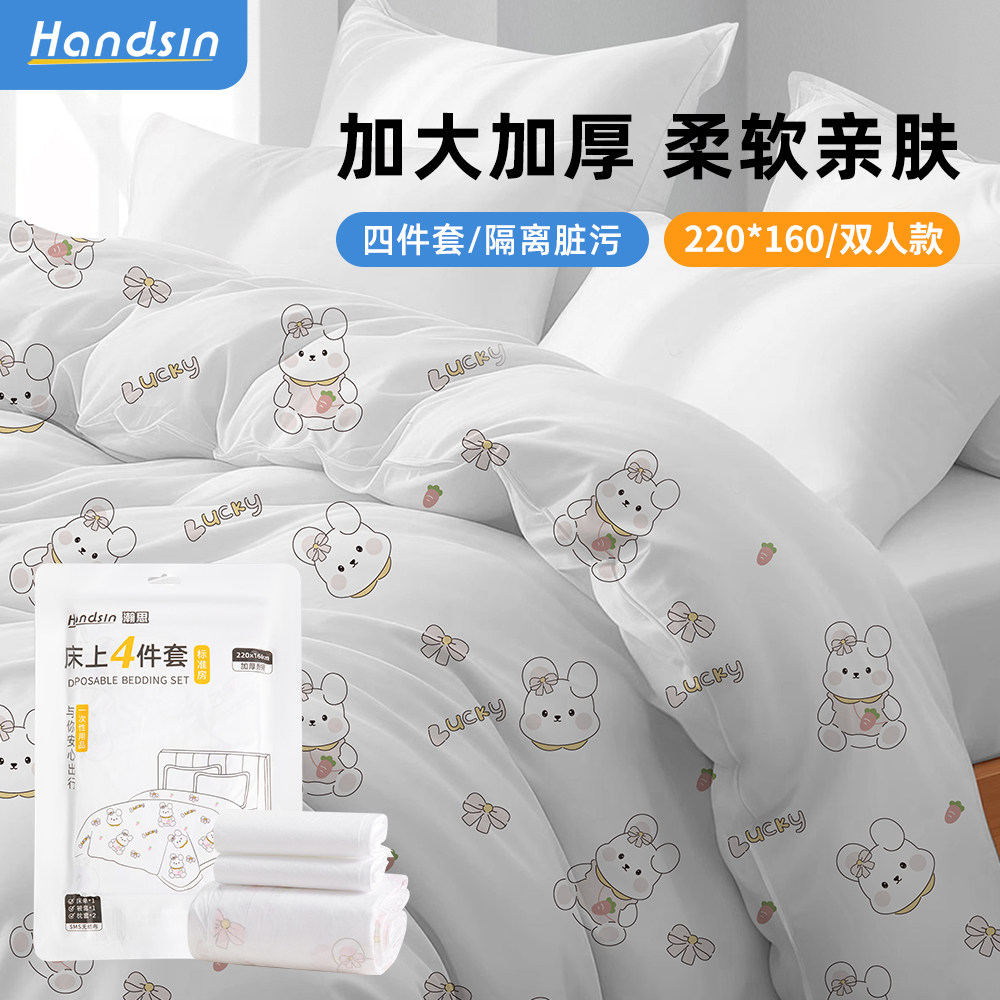 handsin瀚思一次性床上四件套可爱兔子熊猫印花安全无菌旅行便携