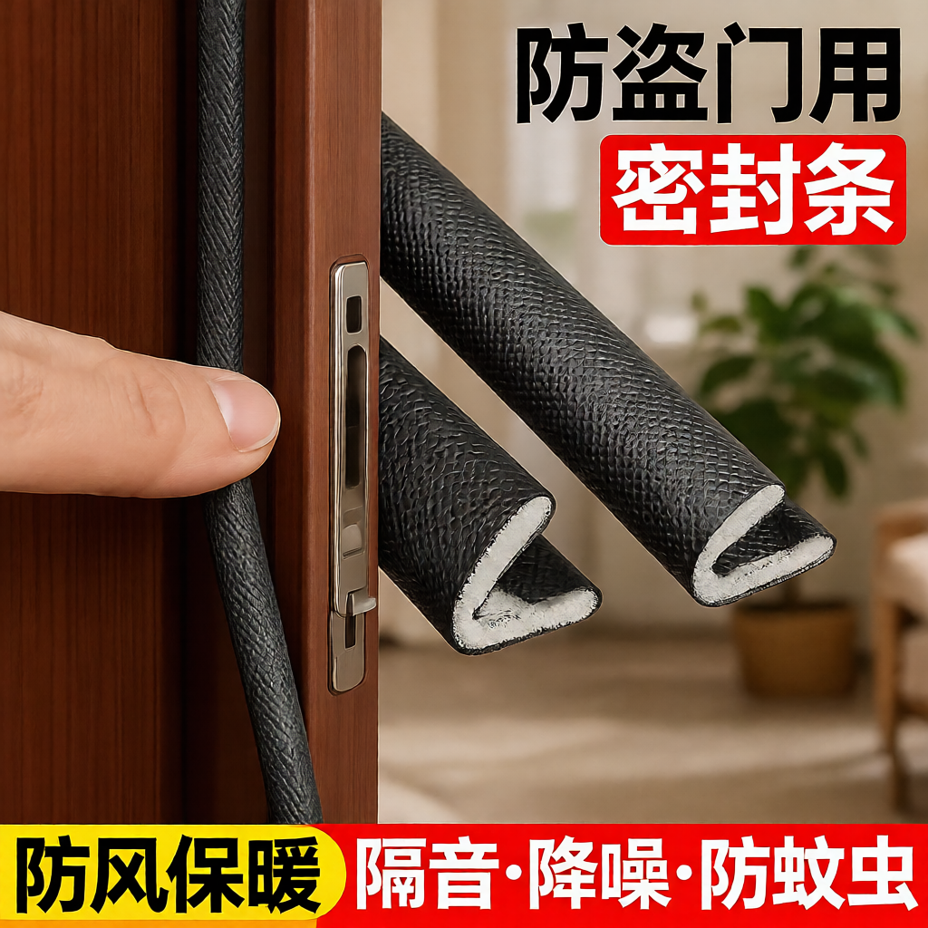 门缝密封条防盗门入户木门框缝隙隔音防风保暖防撞条自粘胶条V型