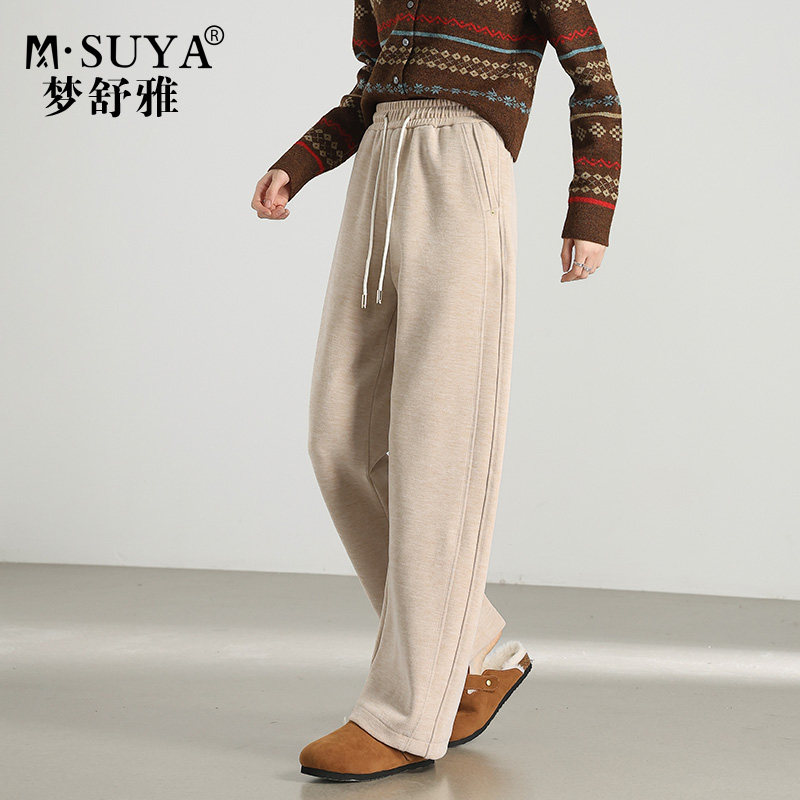 加绒高腰显瘦百搭垂感休闲糯米裤 女2025秋冬新款 阔腿裤 梦舒雅窄版