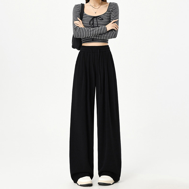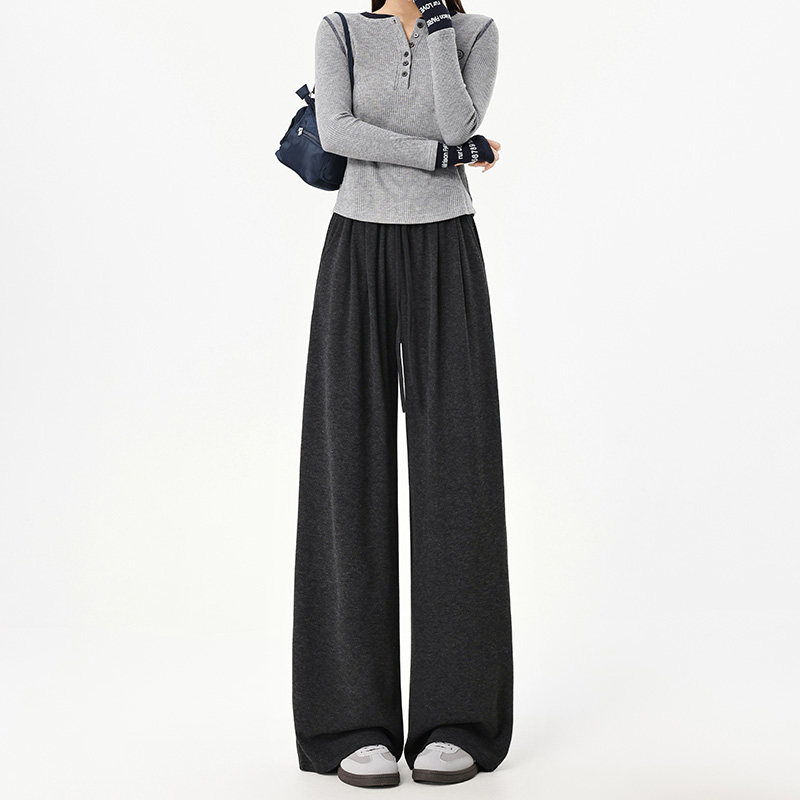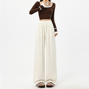 阔腿裤 加绒慵懒垂感小个子窄版 女秋冬2025新款 拉夏贝尔灰色糯米裤