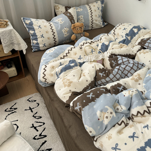 ins费尔岛风狗狗冬季 保暖舒适牛奶绒四件套加厚珊瑚绒学生三件套