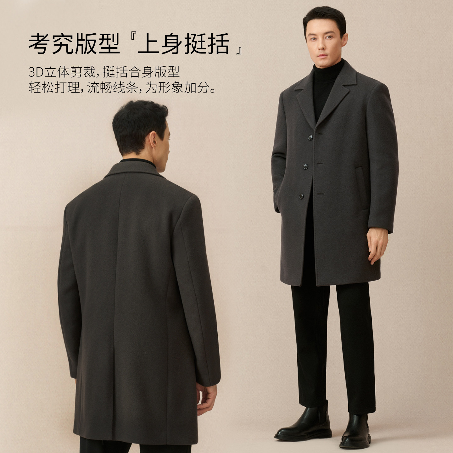 毛呢外套男BQ738211B 商务全羊毛呢子大衣中长款 BONI 堡尼秋冬新品