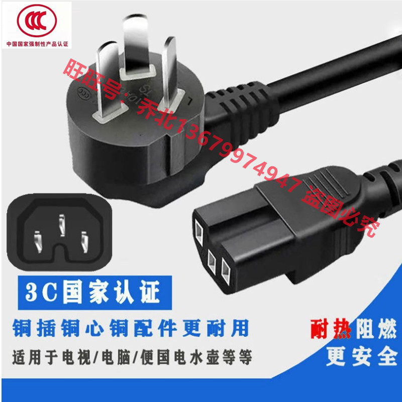 品字插头三孔电源线电饭锅水壶台式 机电脑主机显示器电饭煲打印机
