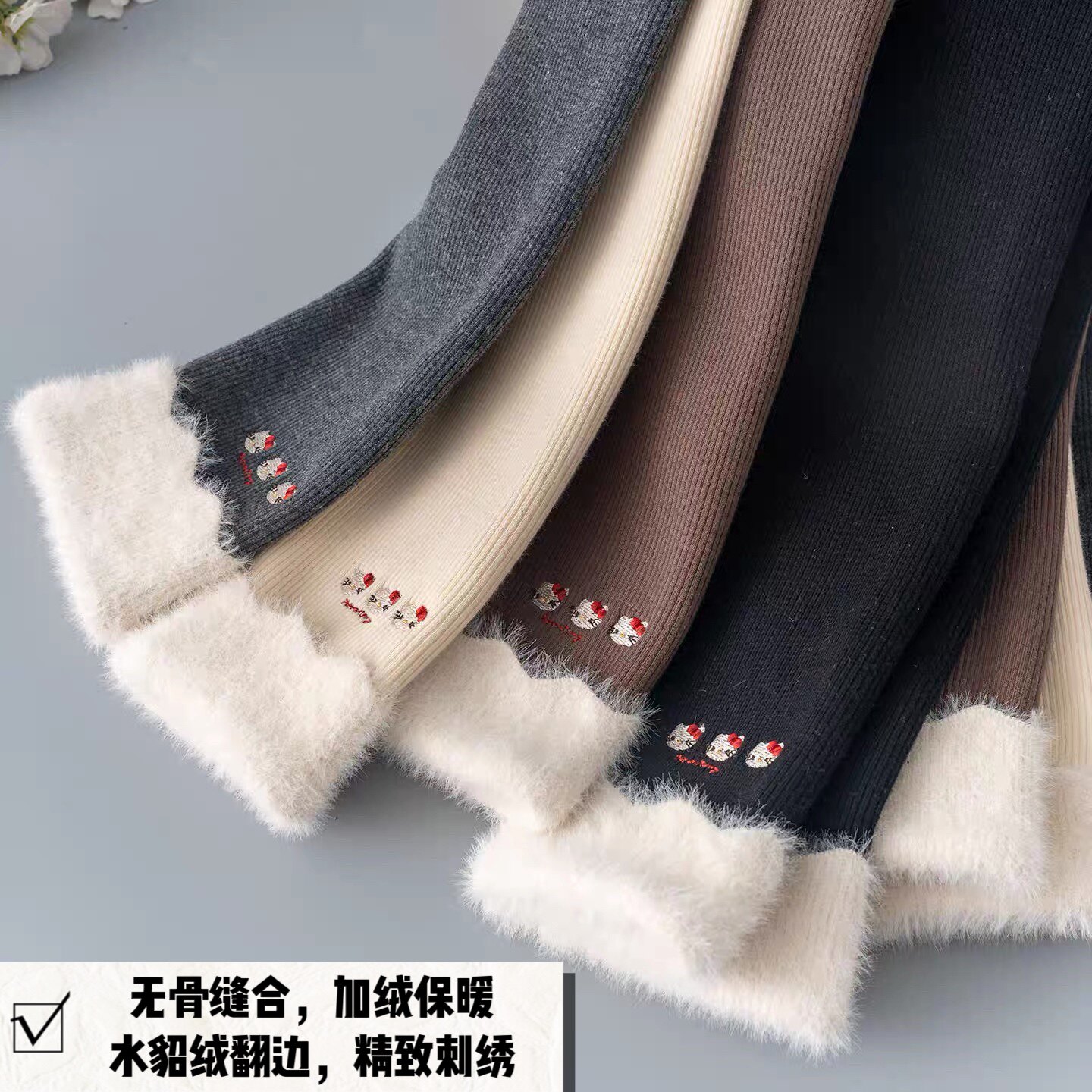 子宝宝冬装 无骨蚕丝加绒加厚女童打底裤 保暖外穿裤 儿童冬季 秋冬款