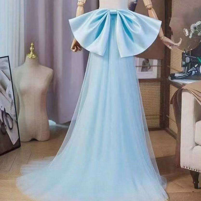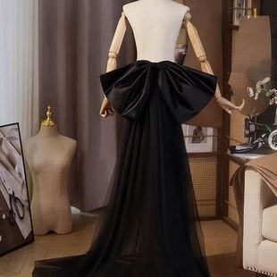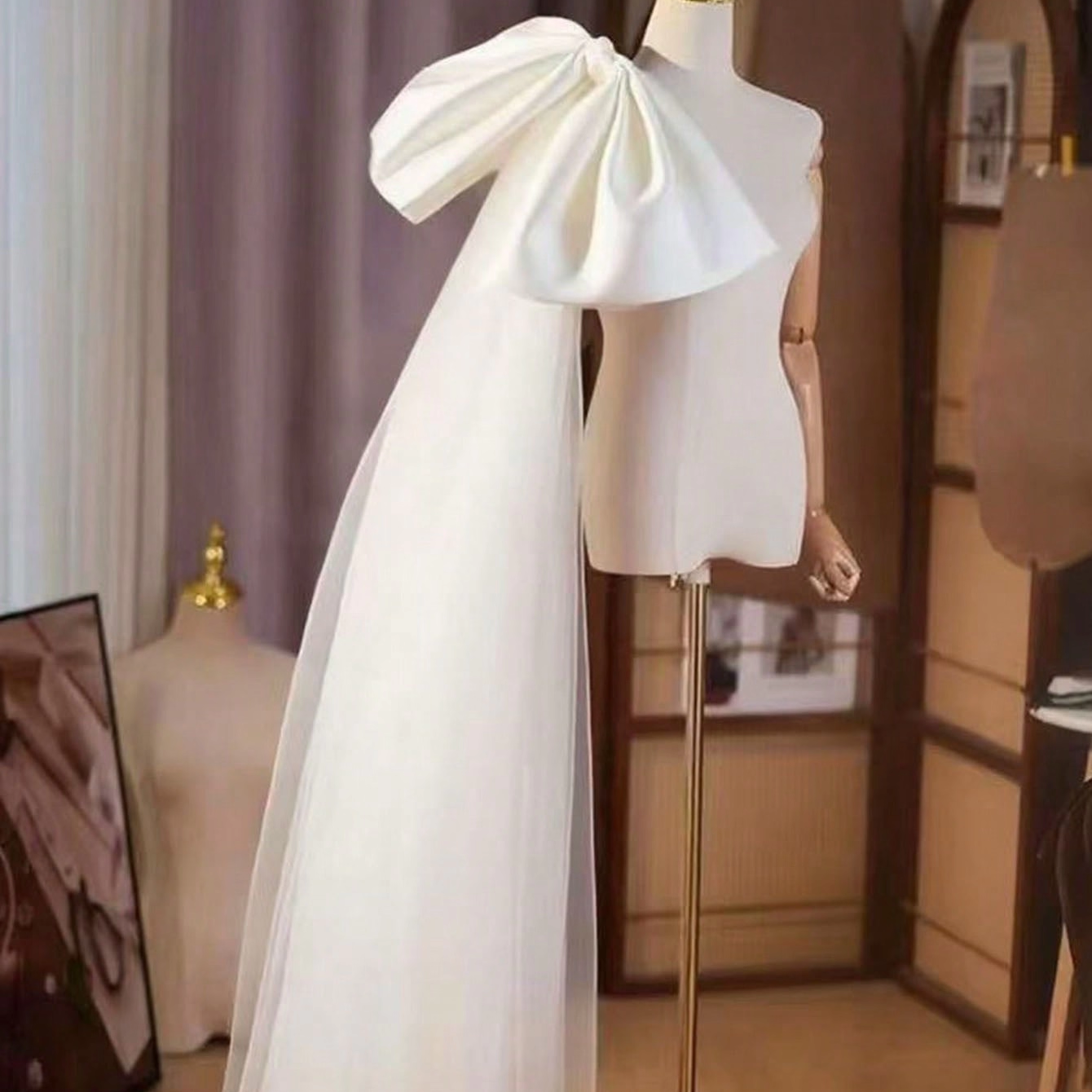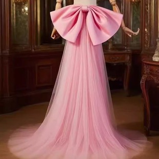晚会新娘礼服手工后背网纱装 饰立体蝴蝶结配饰走秀公主白色拖尾纱
