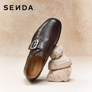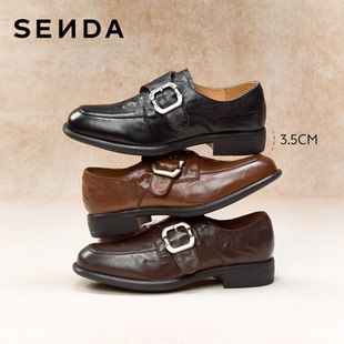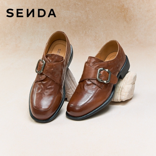 女鞋 真皮单鞋 26新款 软羊皮英伦风黑色皮鞋 商场同款 森达厚底乐福鞋