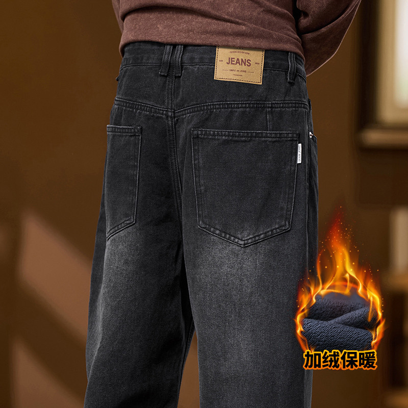 显瘦复古加绒牛仔裤 牛仔长裤 2025冬季 直筒男款 新品 KF真维斯男款