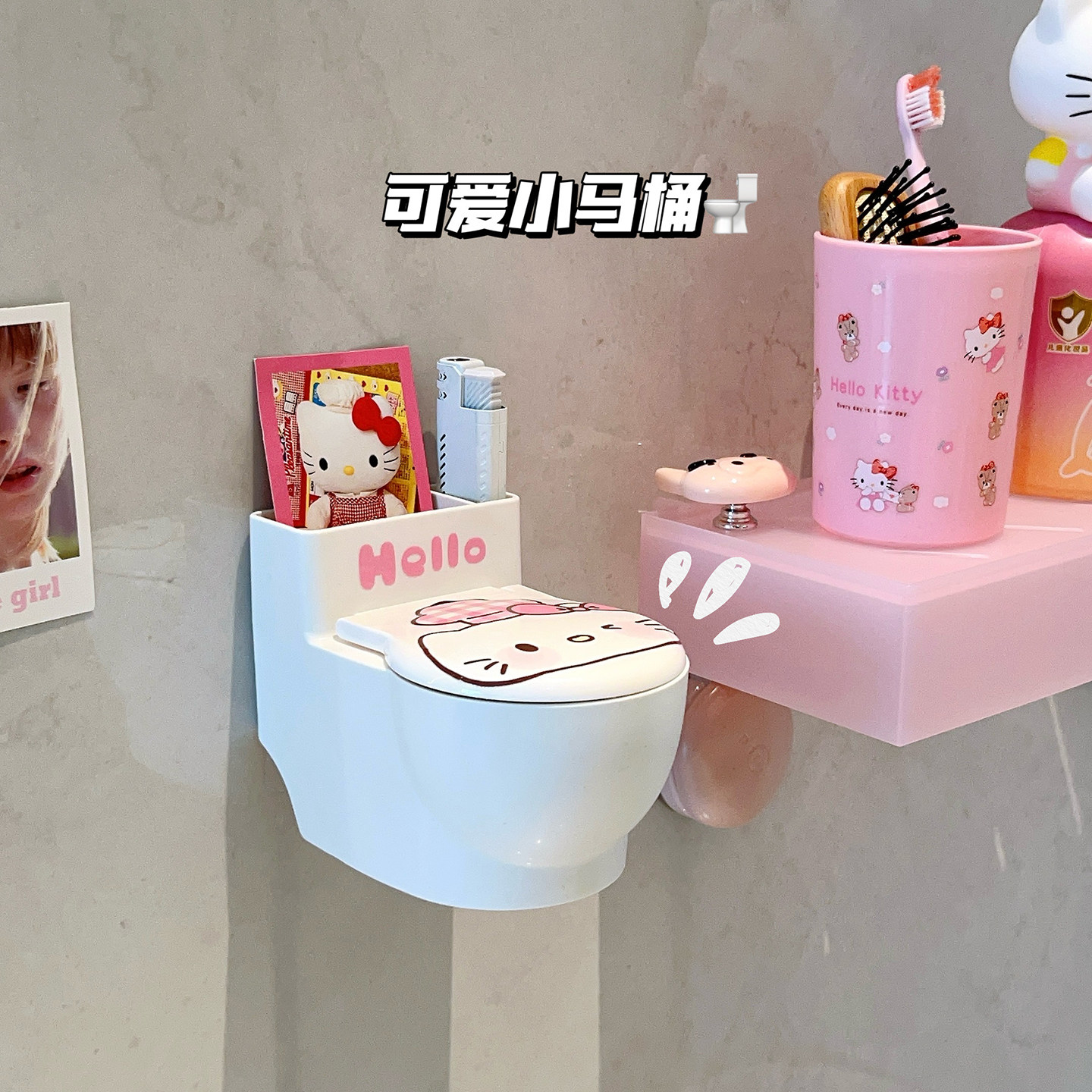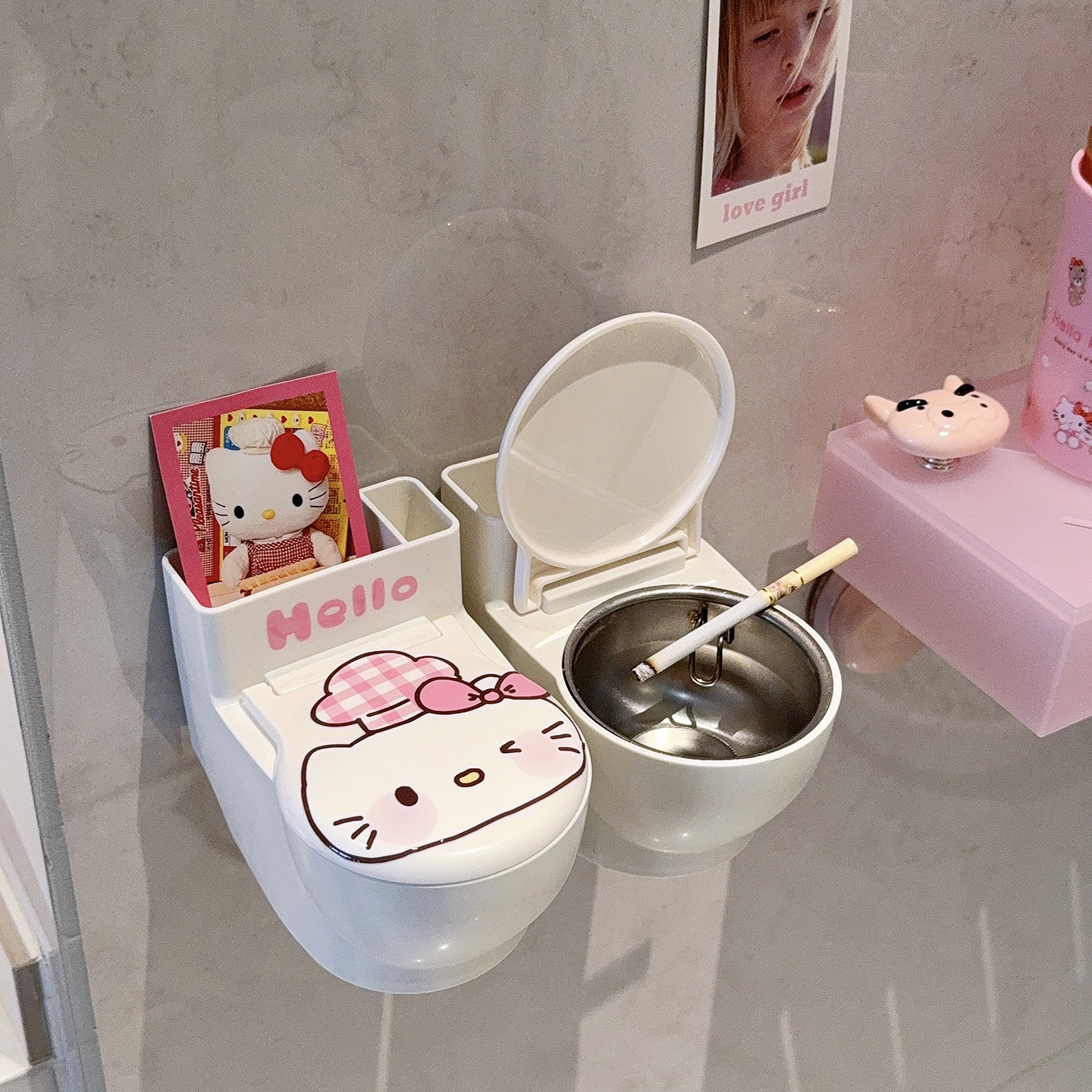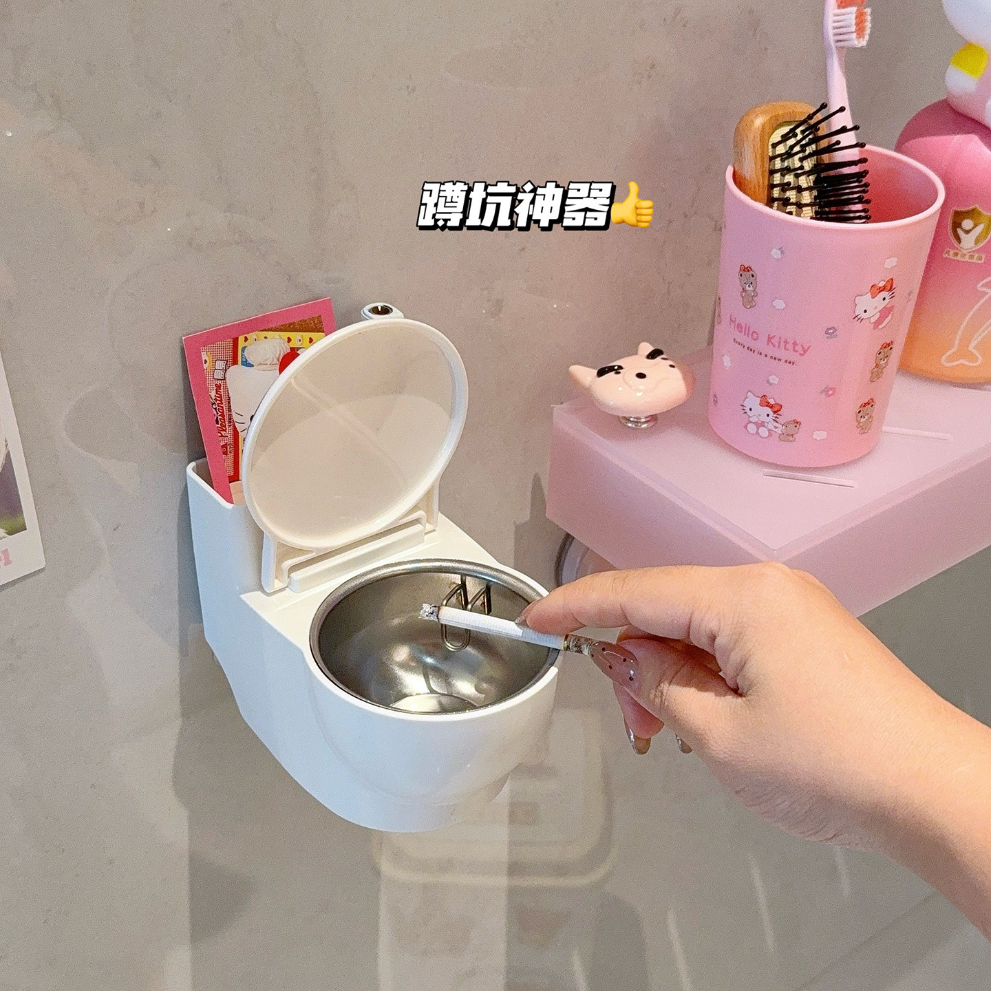 可爱创意马桶造型烟灰缸壁挂厕所蹲坑烟灰收纳盒带盖防烟味洗手间