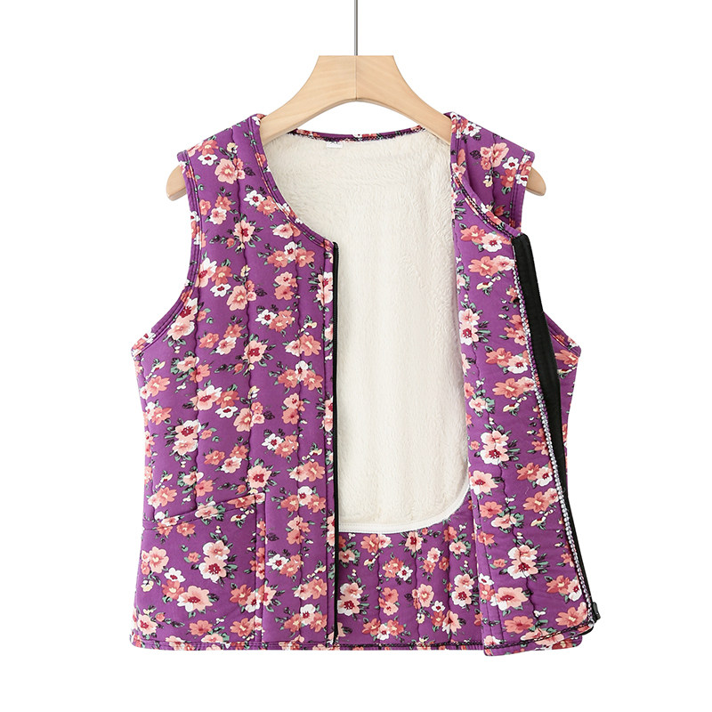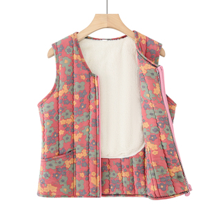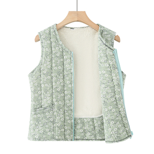 妈妈装 洋气碎花拉链马甲加厚棉马夹女士背心保暖坎肩百搭内胆开衫