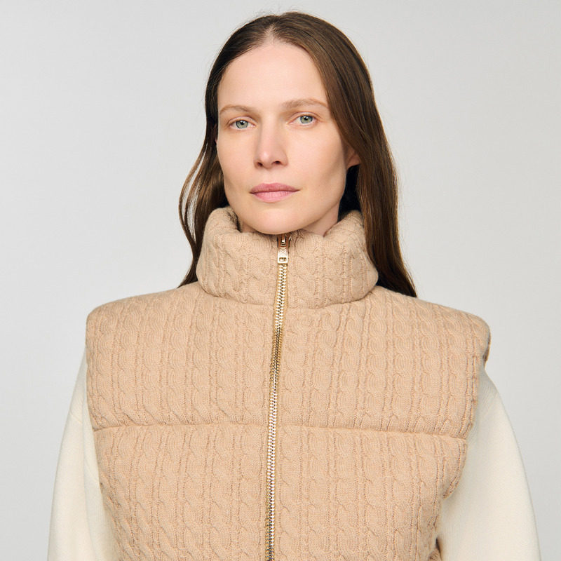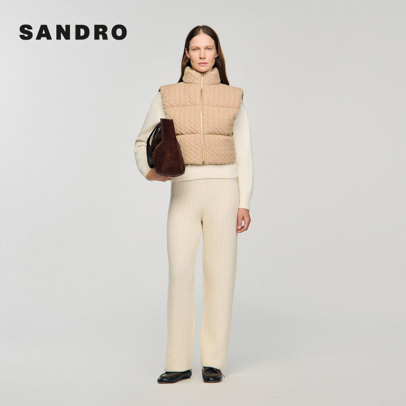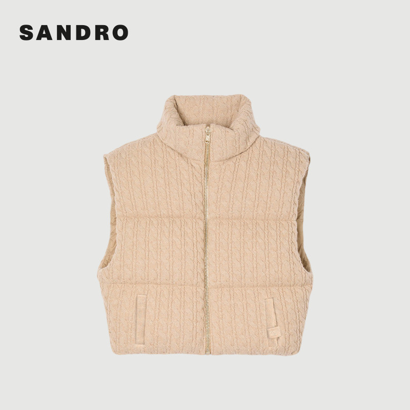 螺纹针织羊毛填充泡芙棉服马甲 法式 季 末7折SANDRO2025秋冬女装