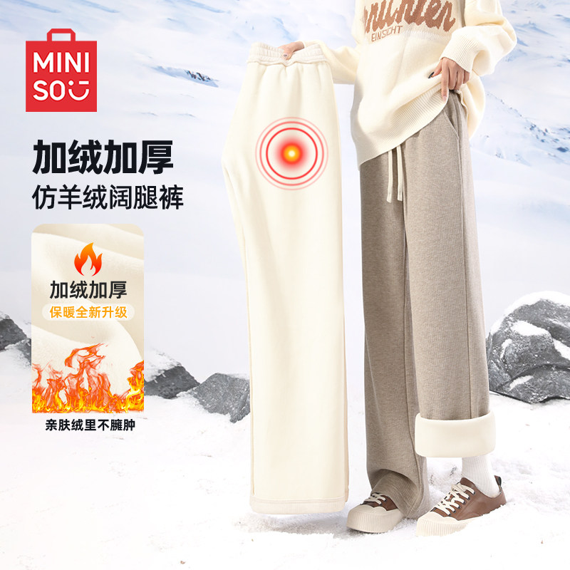 小个子高腰显瘦仿羊绒阔腿裤 名创优品裤 休闲裤 春季 子女2026新款