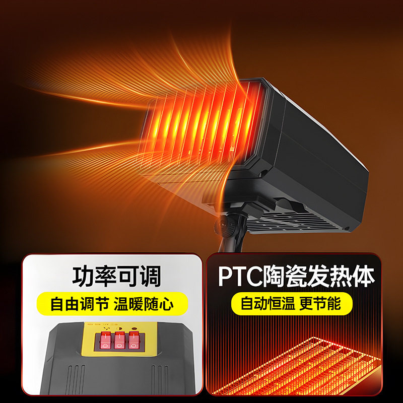 电动车暖风机三轮车取暖器四轮老头乐车用暖风扇便携台式 除雾除霜