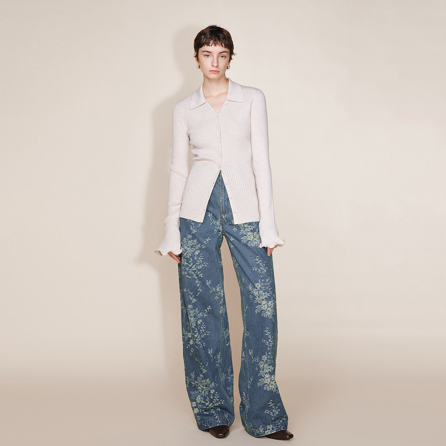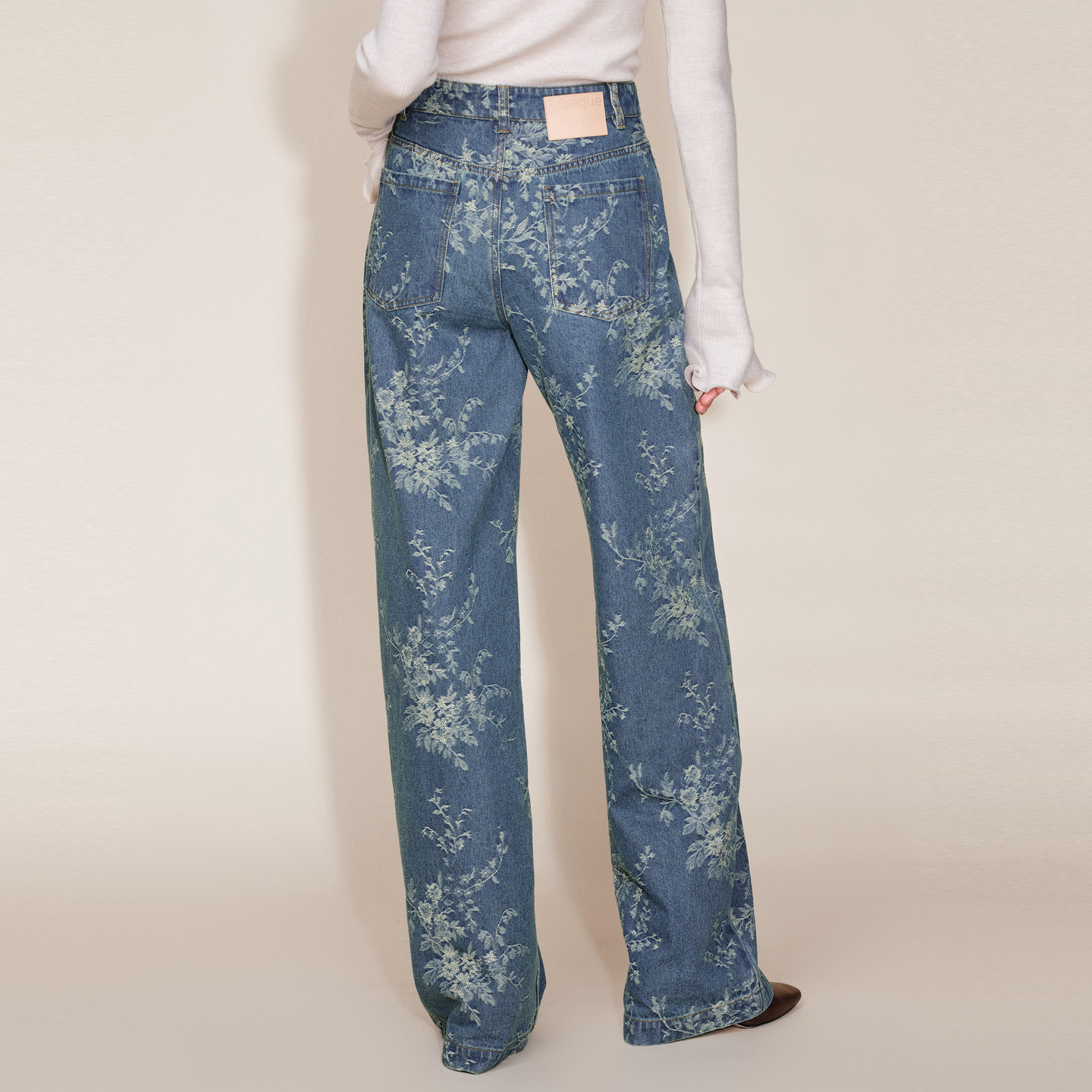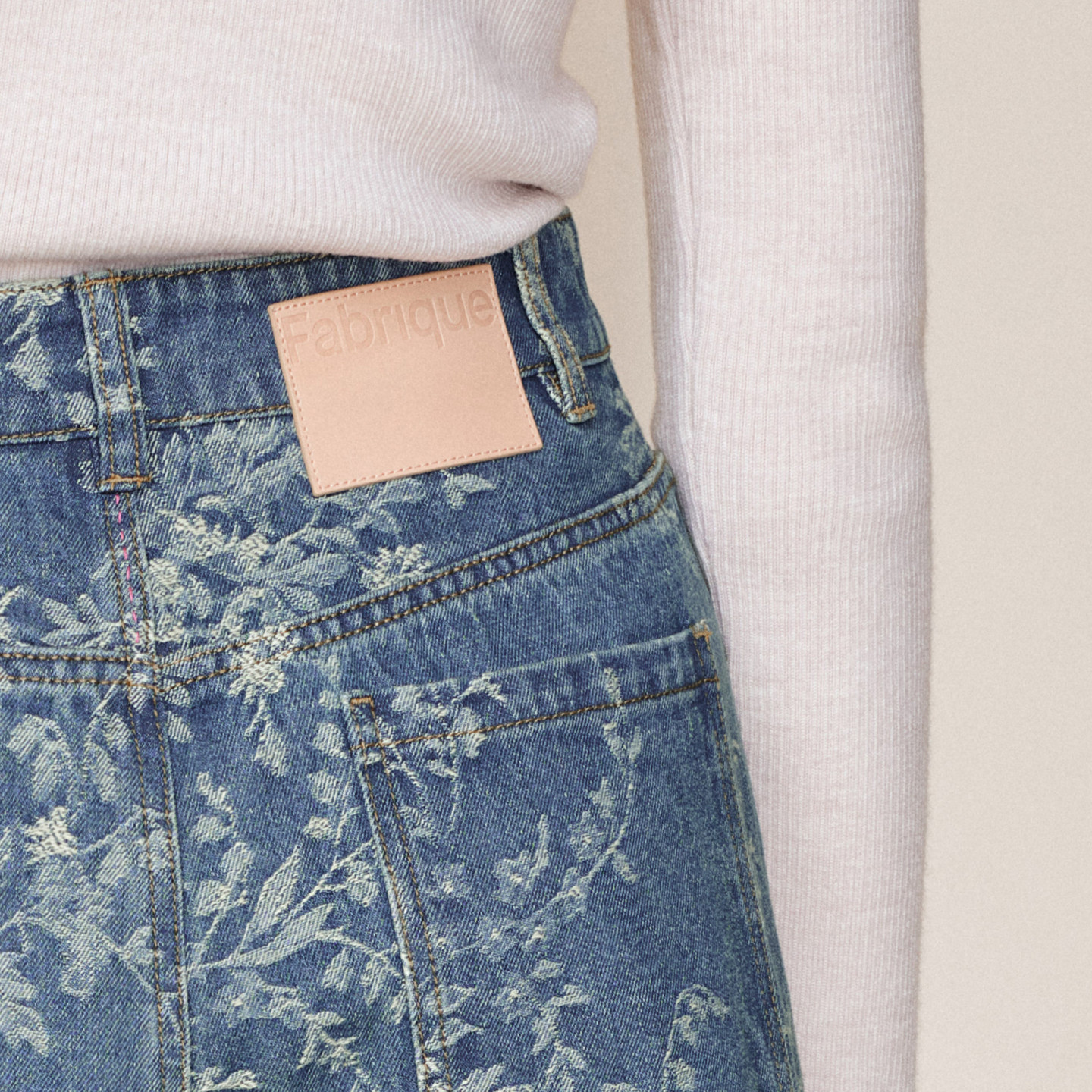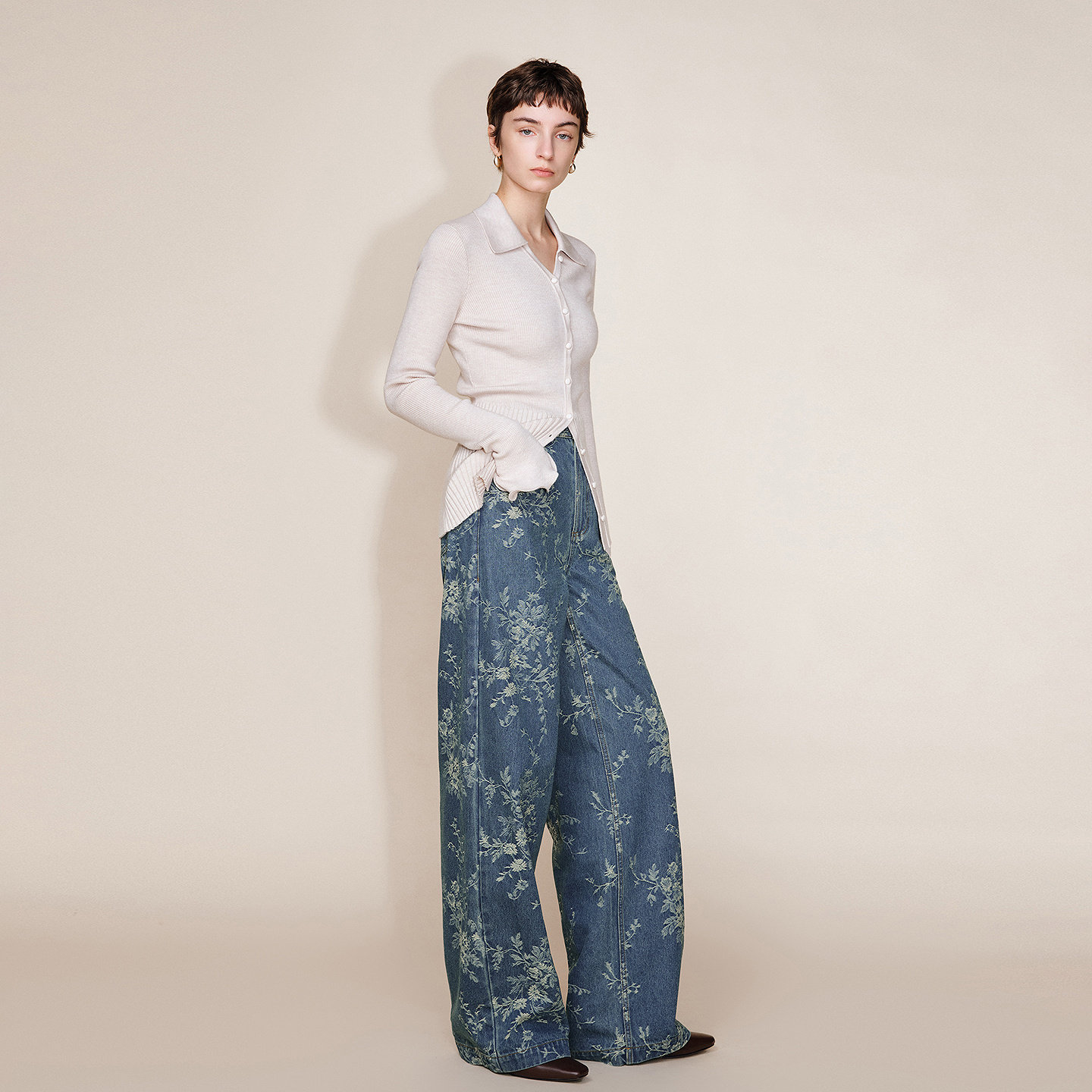 2026年早春新品 Fabrique 水洗蓝花卉提花直筒阔腿牛仔裤