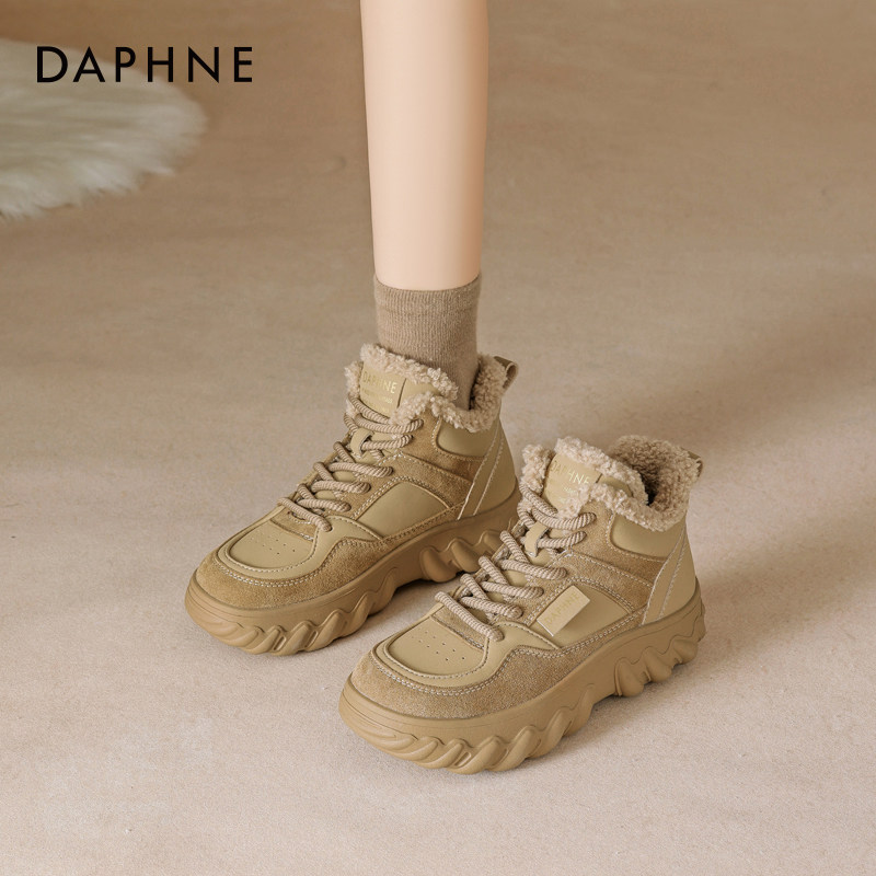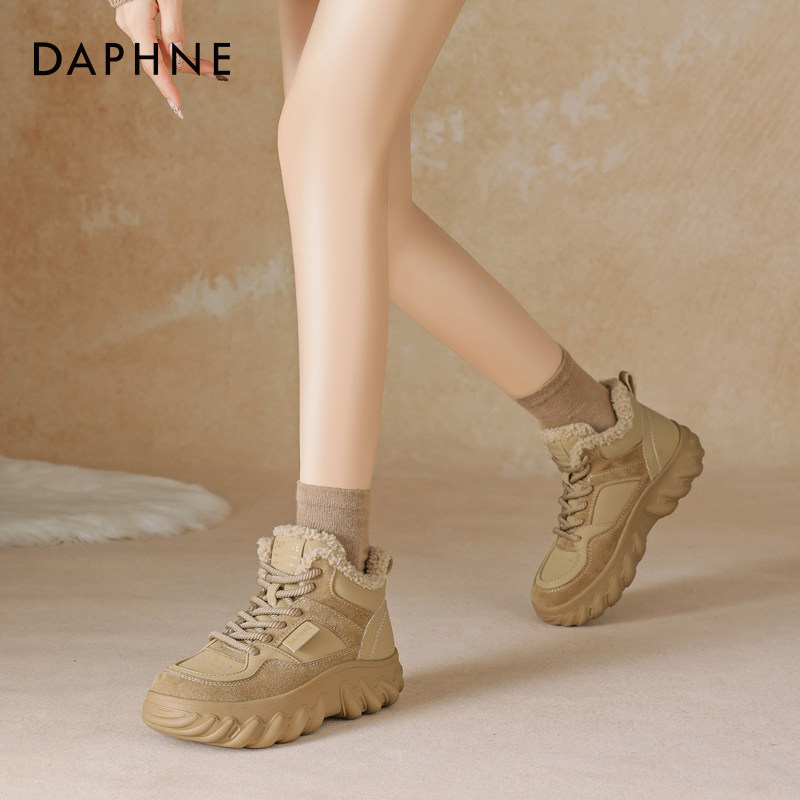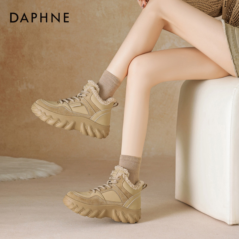 女款 厚底加绒增高休闲运动鞋 2025爆款 新款 秋冬季 达芙妮灰色老爹鞋