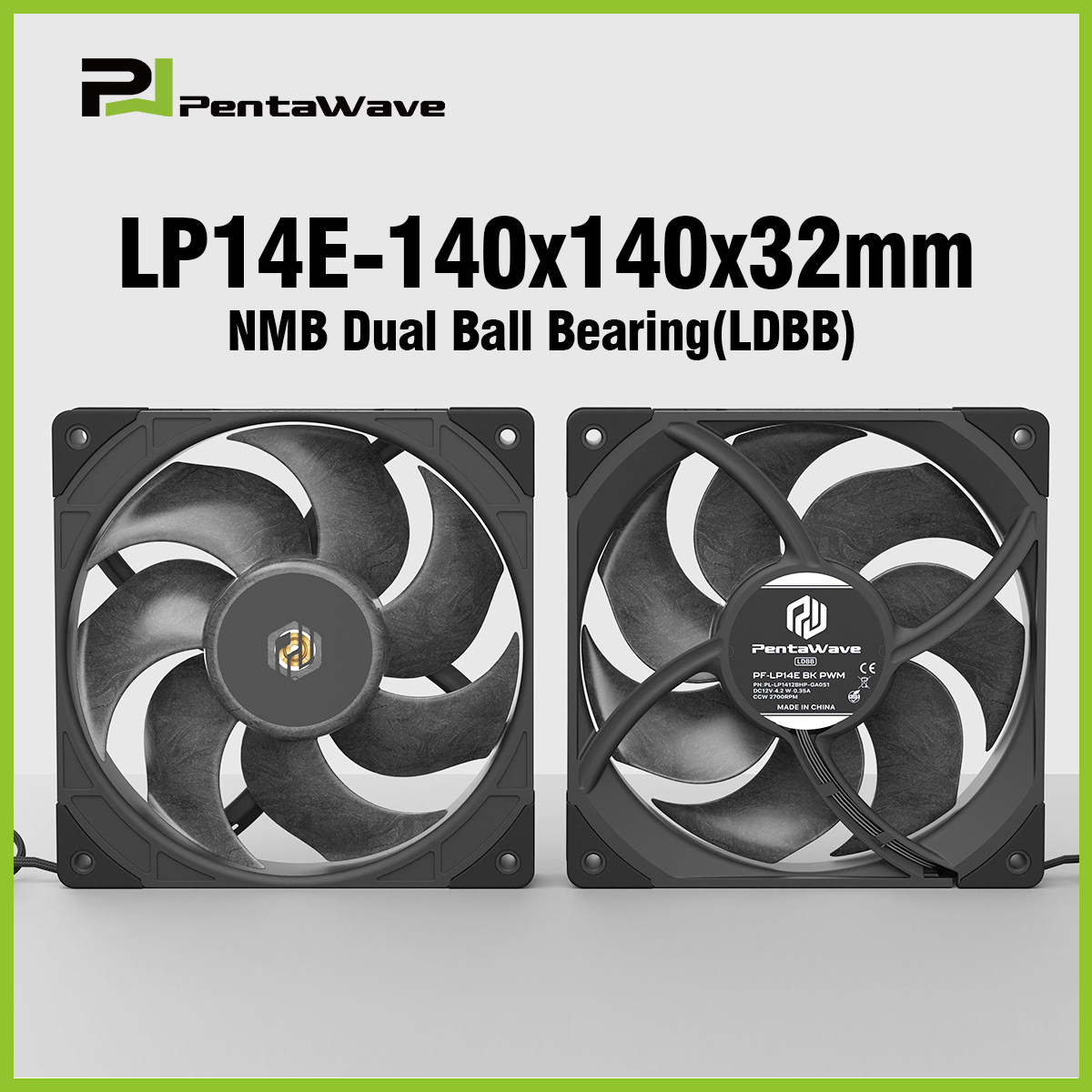 14CM双滚珠2700转机箱风扇 LP14E 14032工业扇 攀威 PentaWave