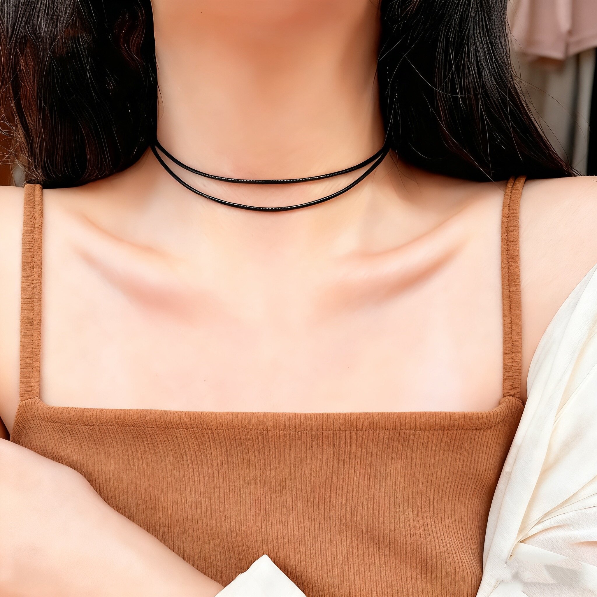 S925纯银赵露思同款 项圈女choker棕色颈链双层锁骨链小众穿吊坠绳