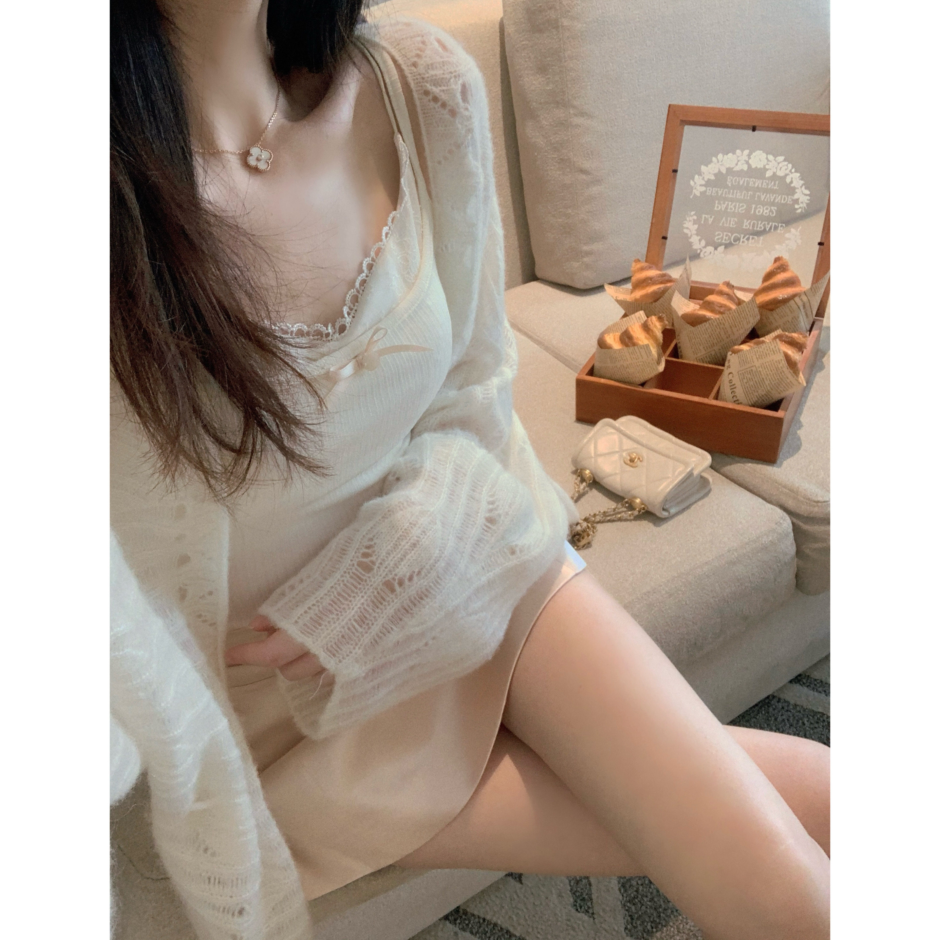 吊带秋冬加厚打底衫 宽松白色卫衣叠穿内搭中长款 纯棉背心女外无袖