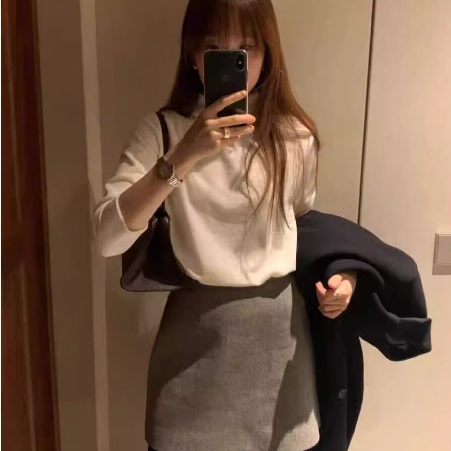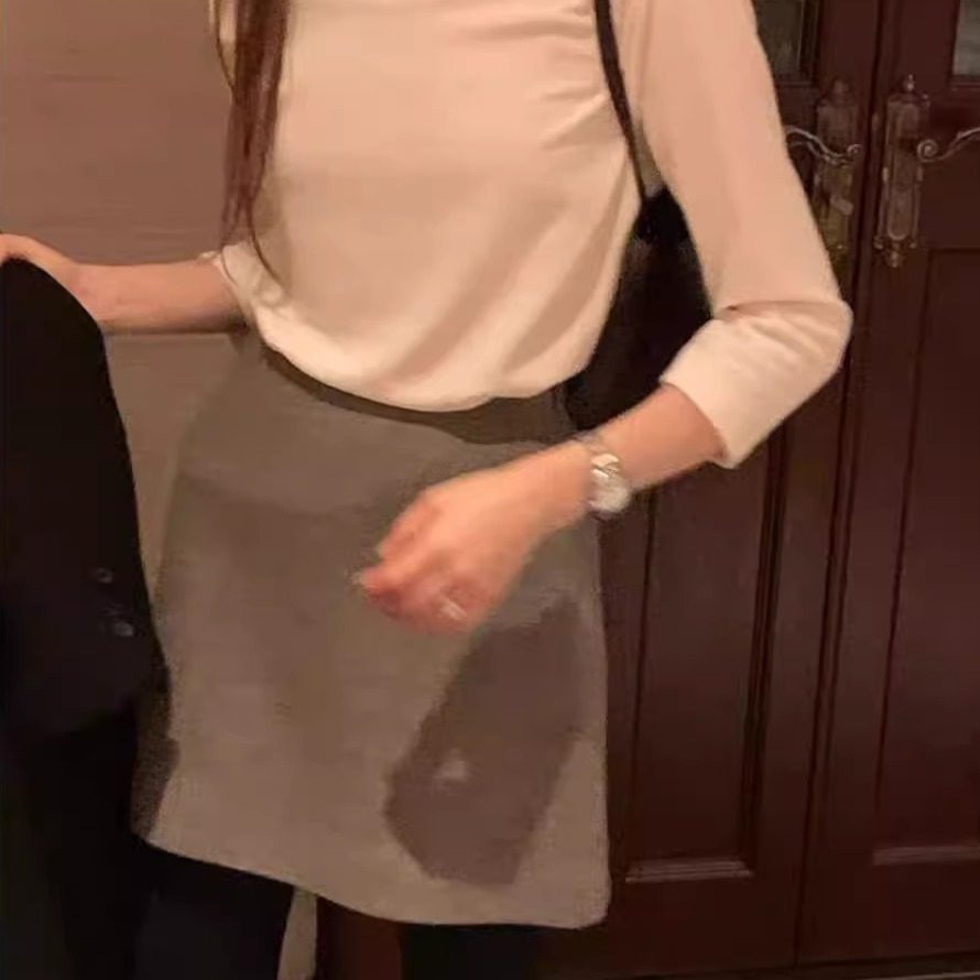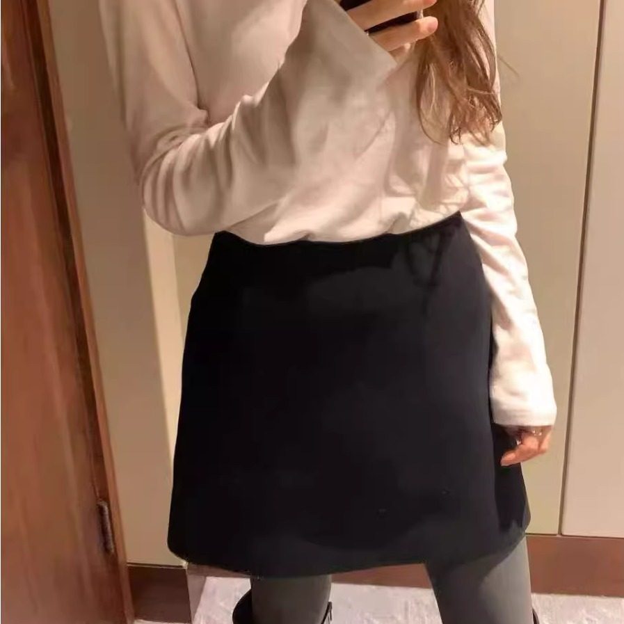 高品质 韩国ounce2025秋冬高腰显瘦纯色百搭毛呢A字半身裙女短裙