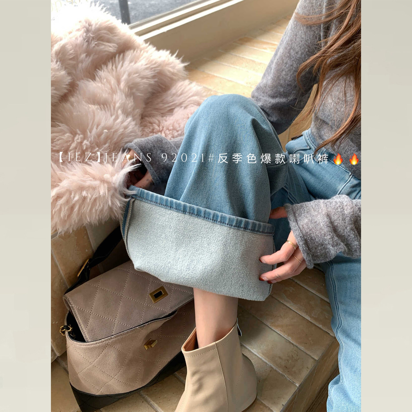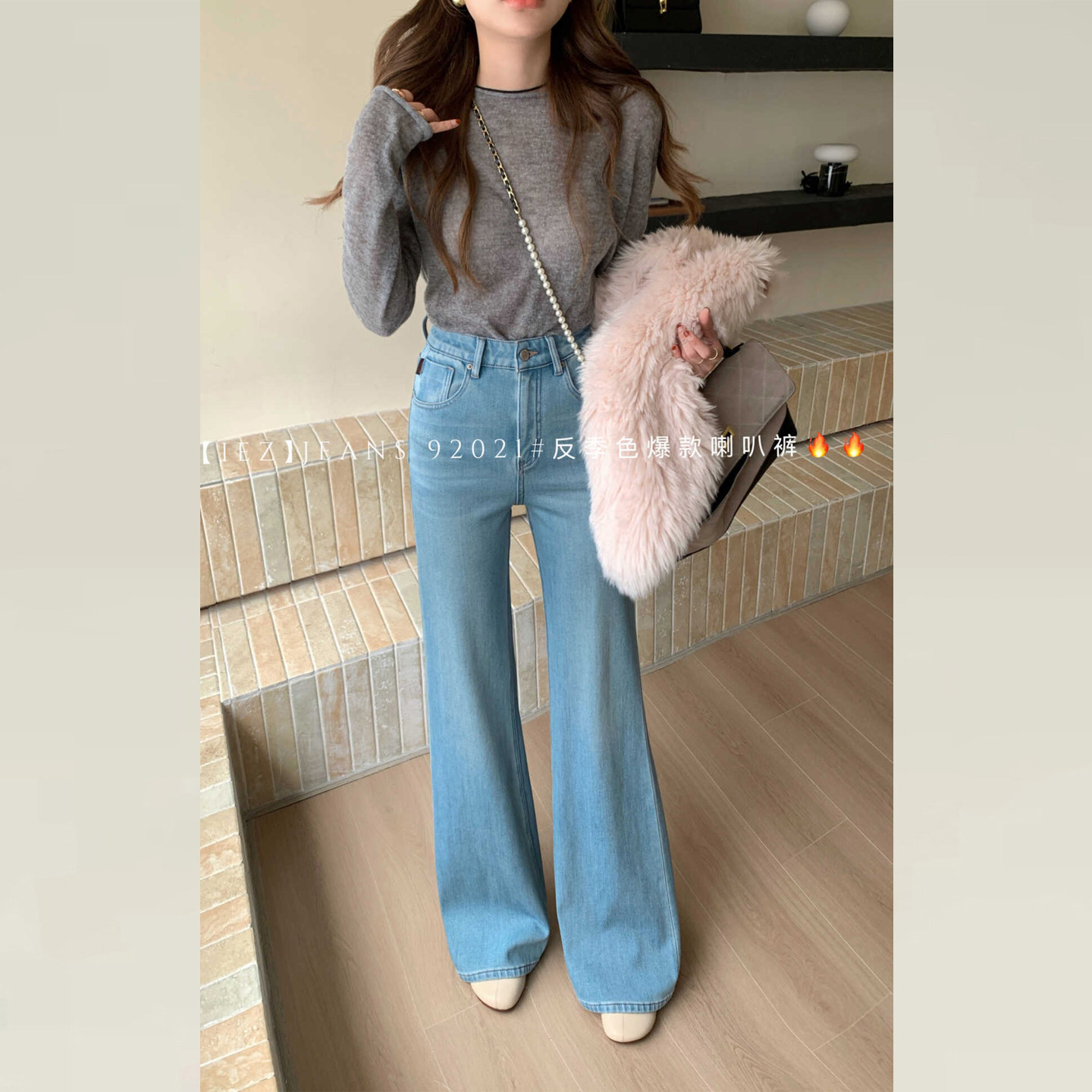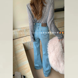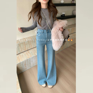 松弛感直筒显瘦休闲拖地裤 女秋季 复古微喇牛仔裤 橘子树在哪儿美式