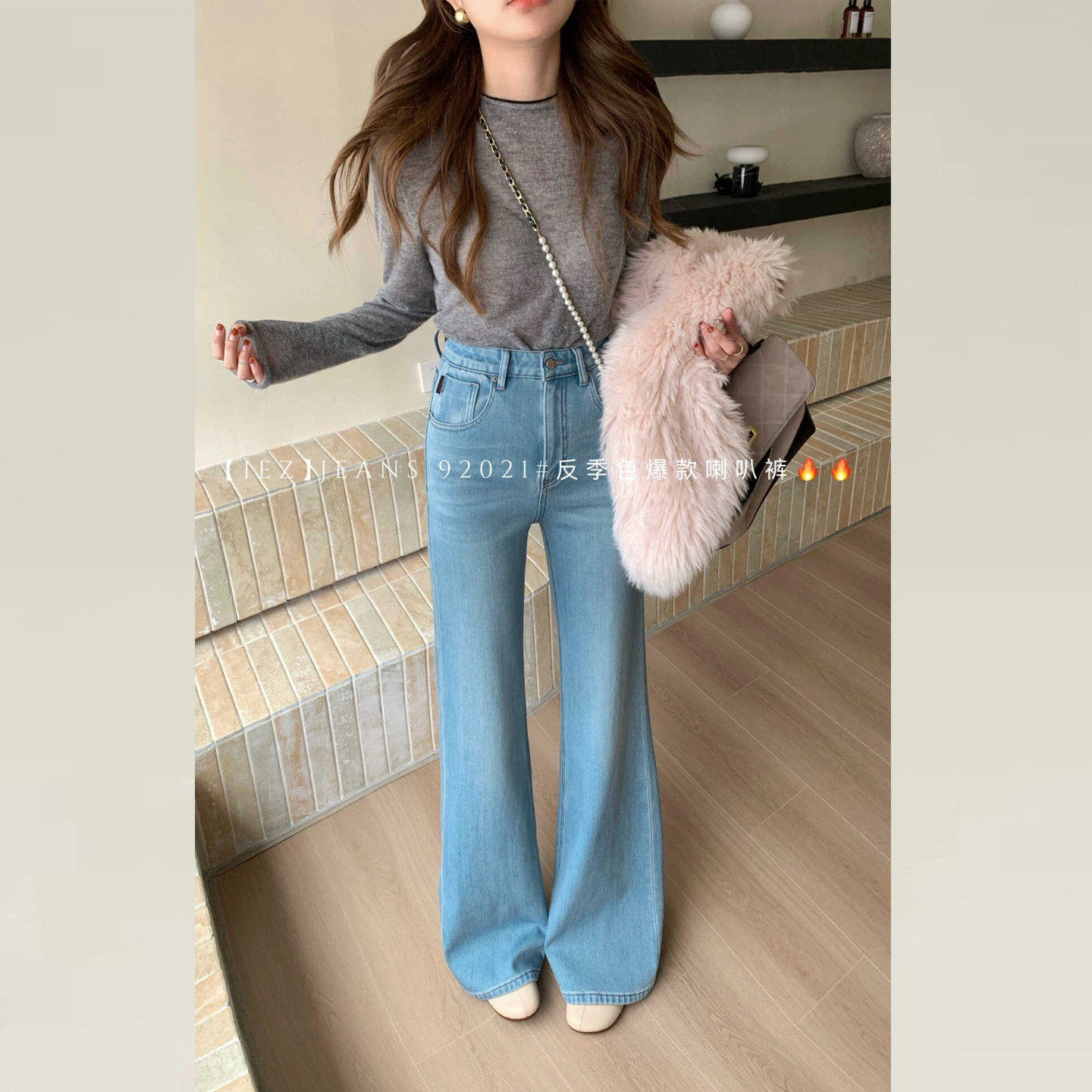三种裤 加绒加长版 长 女秋冬款 高腰宽松百搭显瘦喇叭裤 微喇牛仔裤