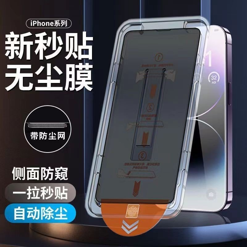 xr新款 15防窥膜14pm防尘膜plus 适用苹果17pro钢化膜iphone15promax手机膜16 盒13全屏x神器max 秒贴无尘仓