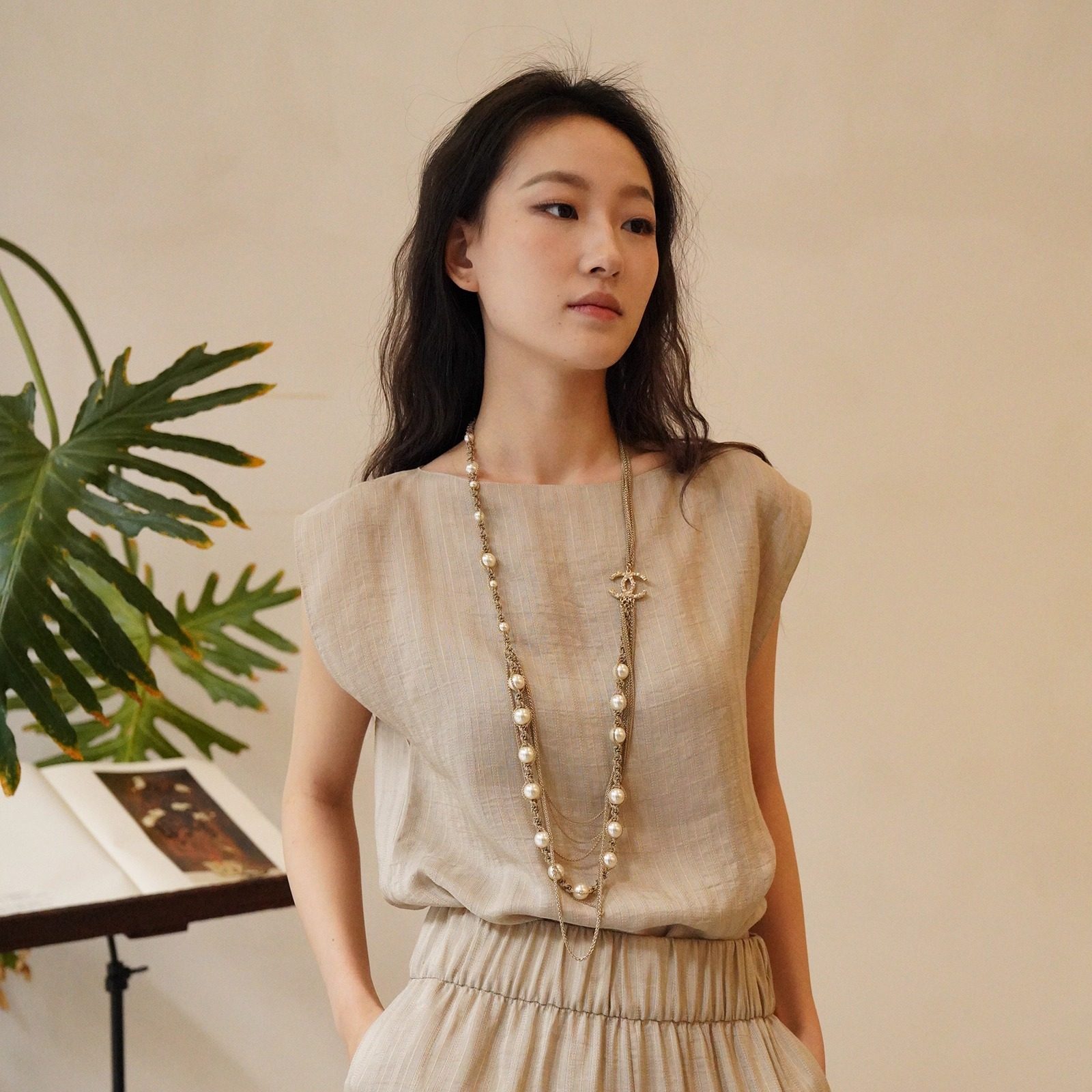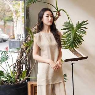 官方 粘纤亚麻混纺提花条纹无袖 Cortana ELLIS 上衣 26早春 Cha