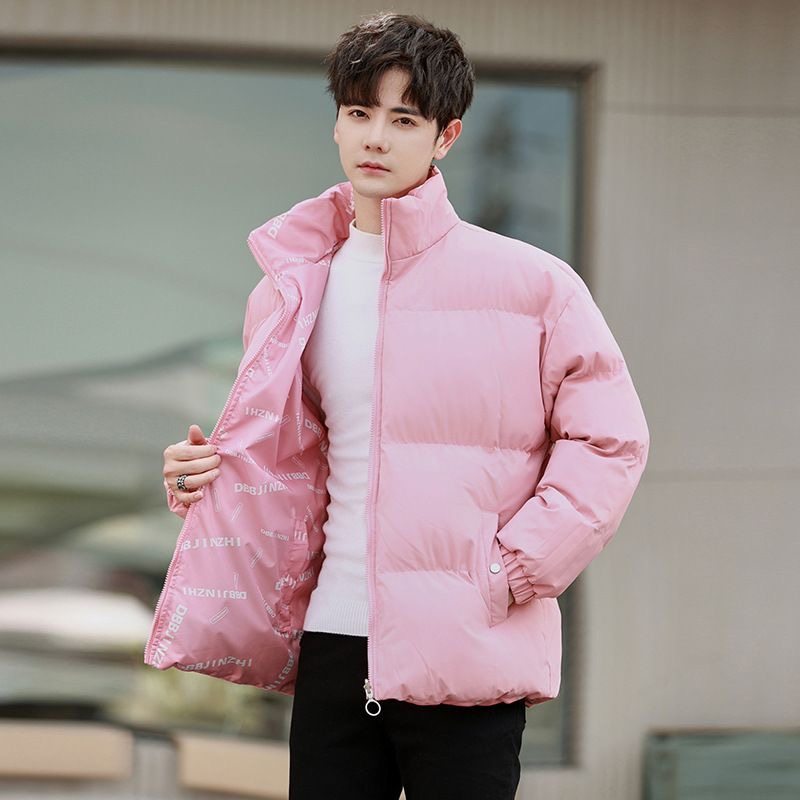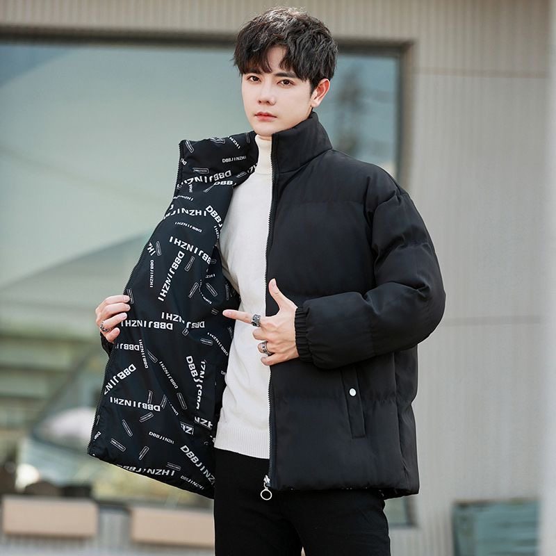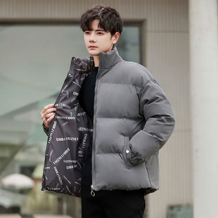 华人青年基础logo拼接棉服外套潮牌情侣休闲保暖立领棉衣面包服