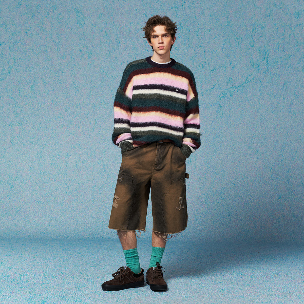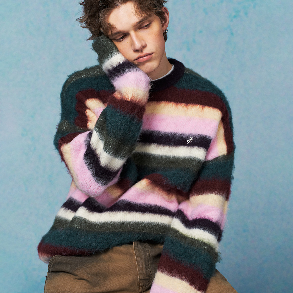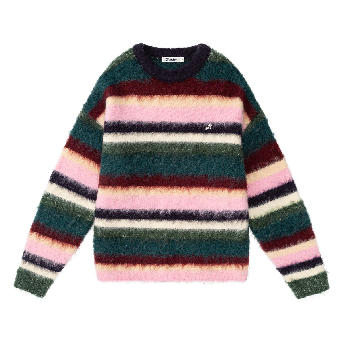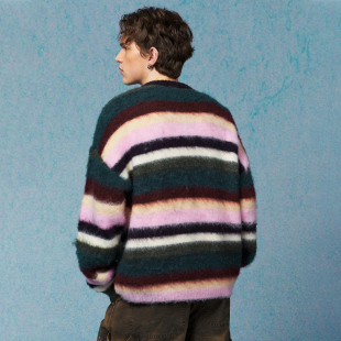 拼接毛绒套头毛衣情侣 新款 BEASTER条纹撞色针织衫 男2026年春季