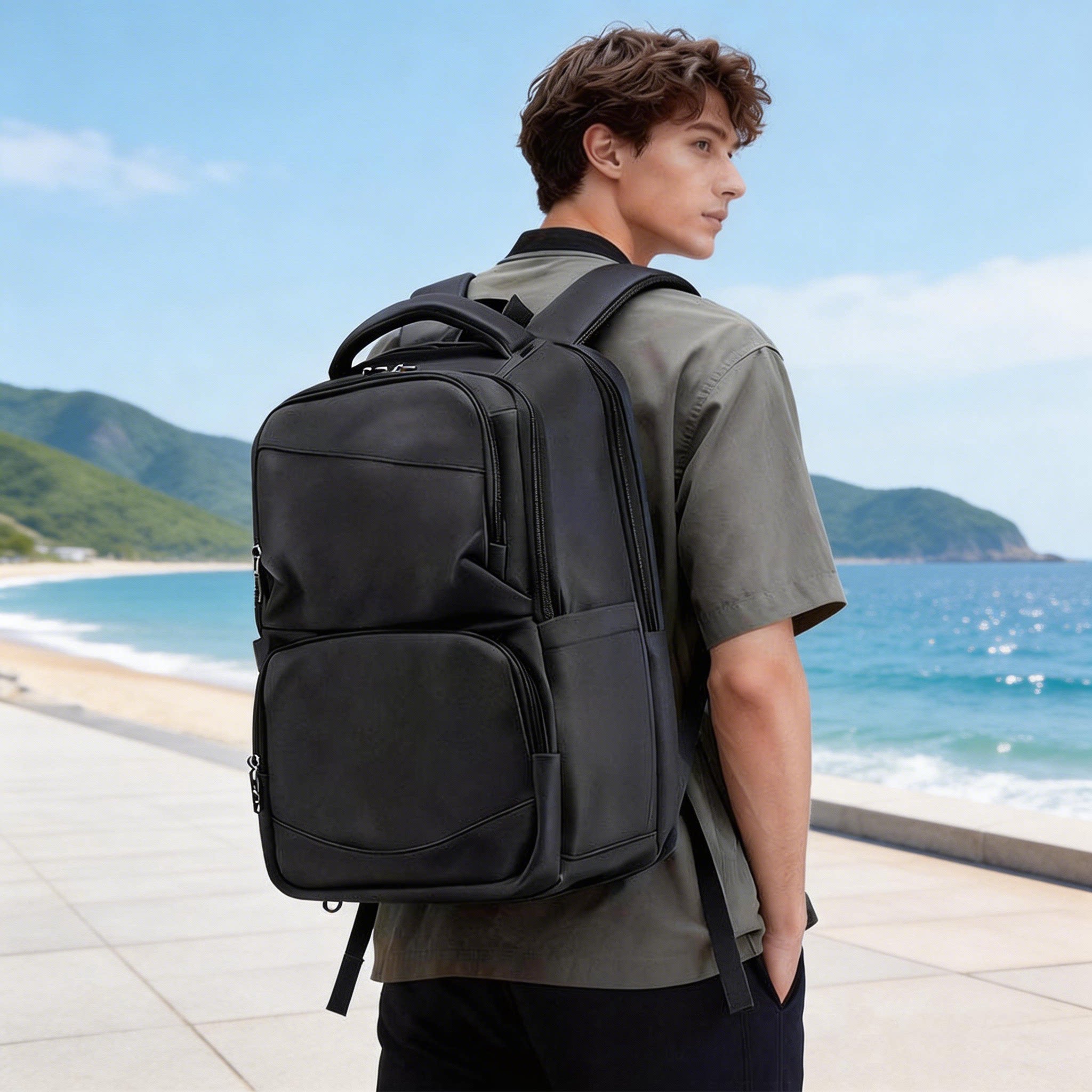 黑色商务双肩包男士 大容量通勤拜访客户差旅16寸电脑出差防水背包