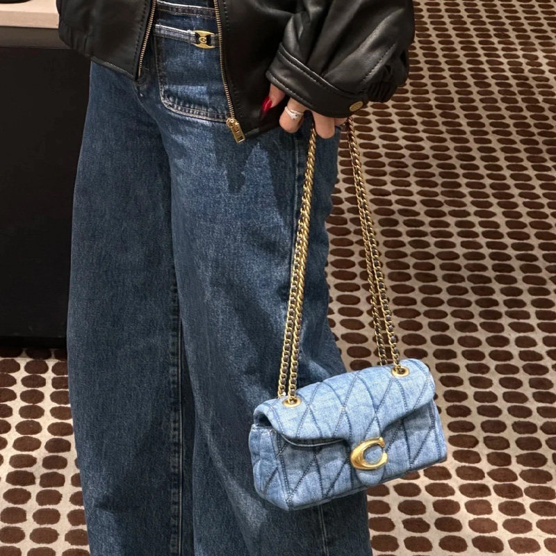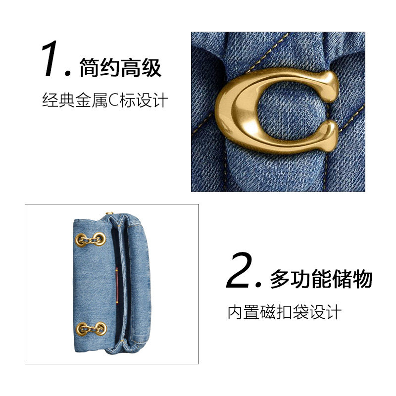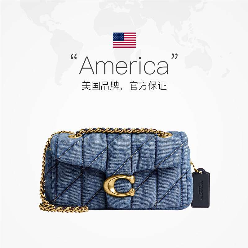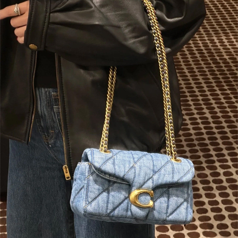 蔻驰女包Tabby20丹宁链条包牛仔斜挎单肩包送女友 COACH 自营