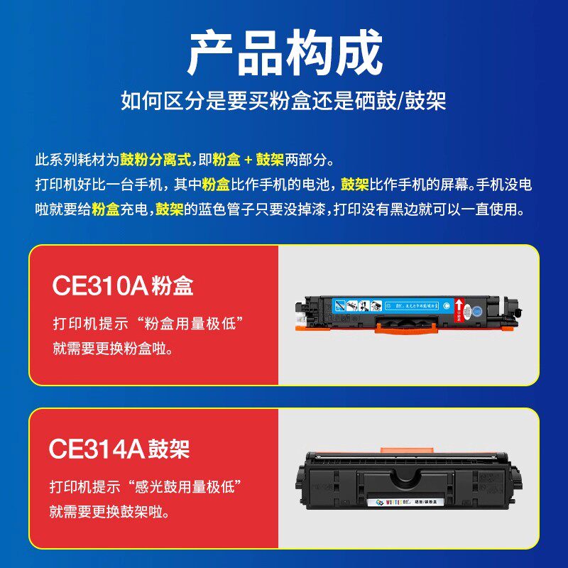 M177fw硒鼓M175nw hp126a 275mfp hp1025 CE310A打印机墨粉盒 M175A墨盒CP1025nw 适用惠普CP1025粉盒M176n