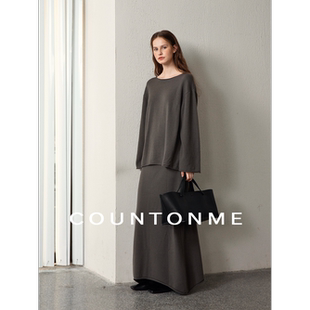 RUISHI芮时 60支羊毛知识分子风A字显瘦灰色针织百褶半身裙女冬