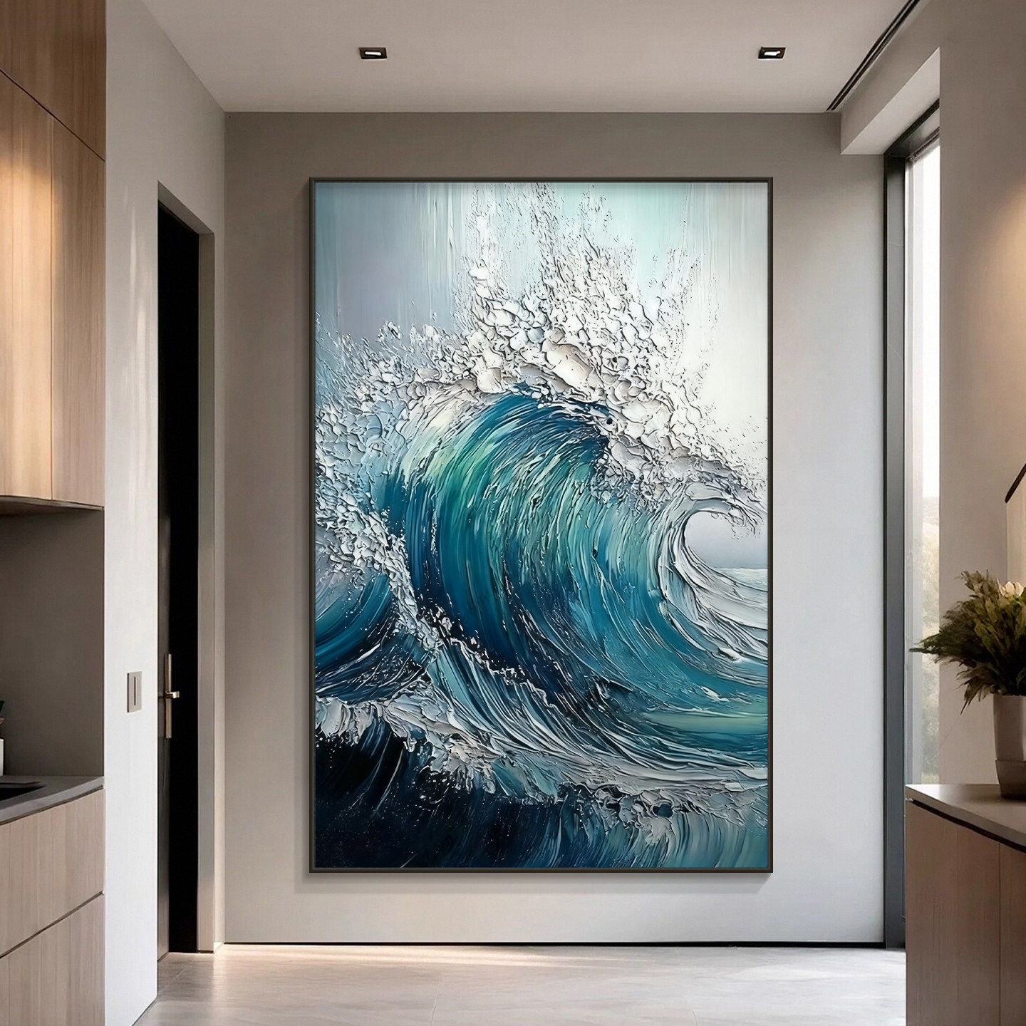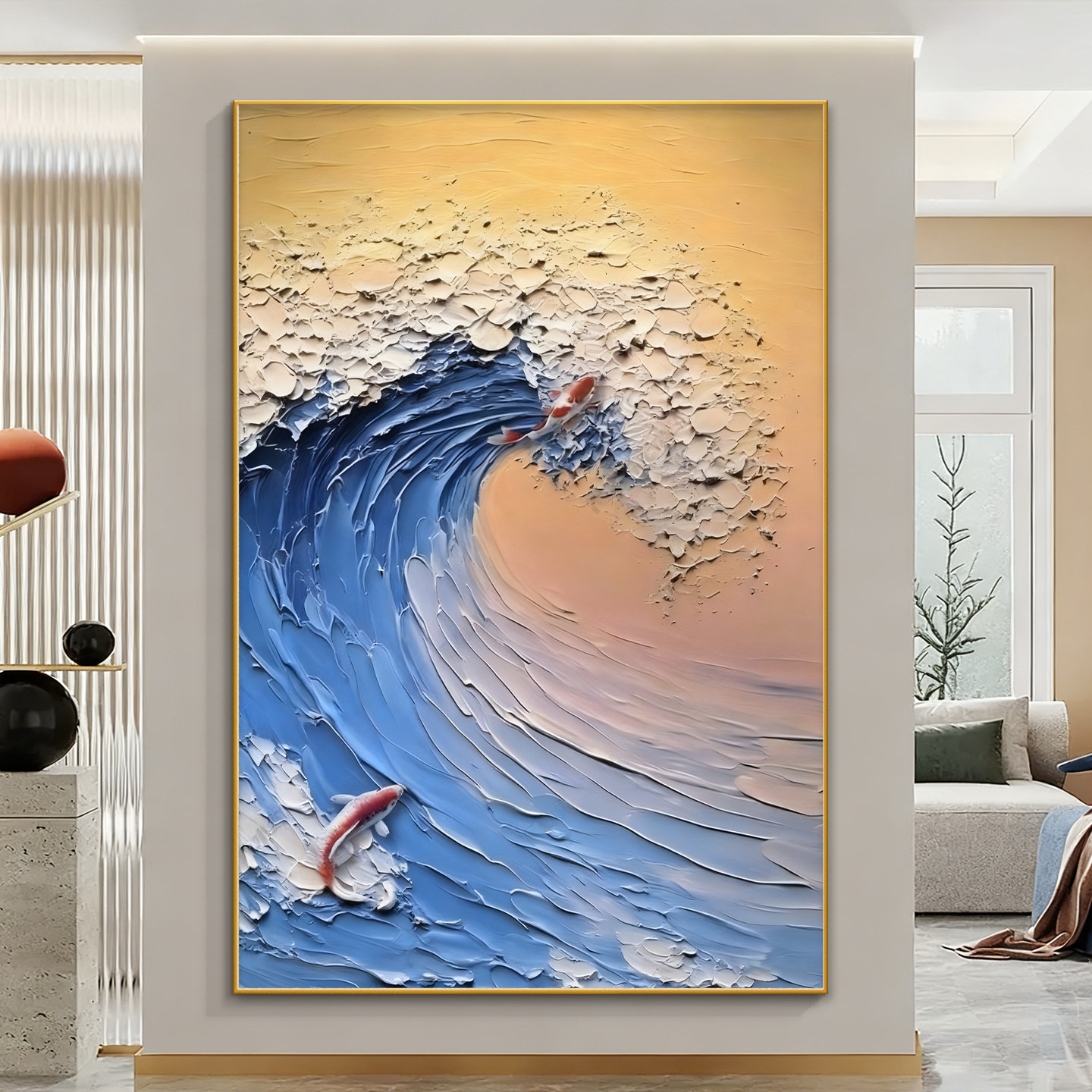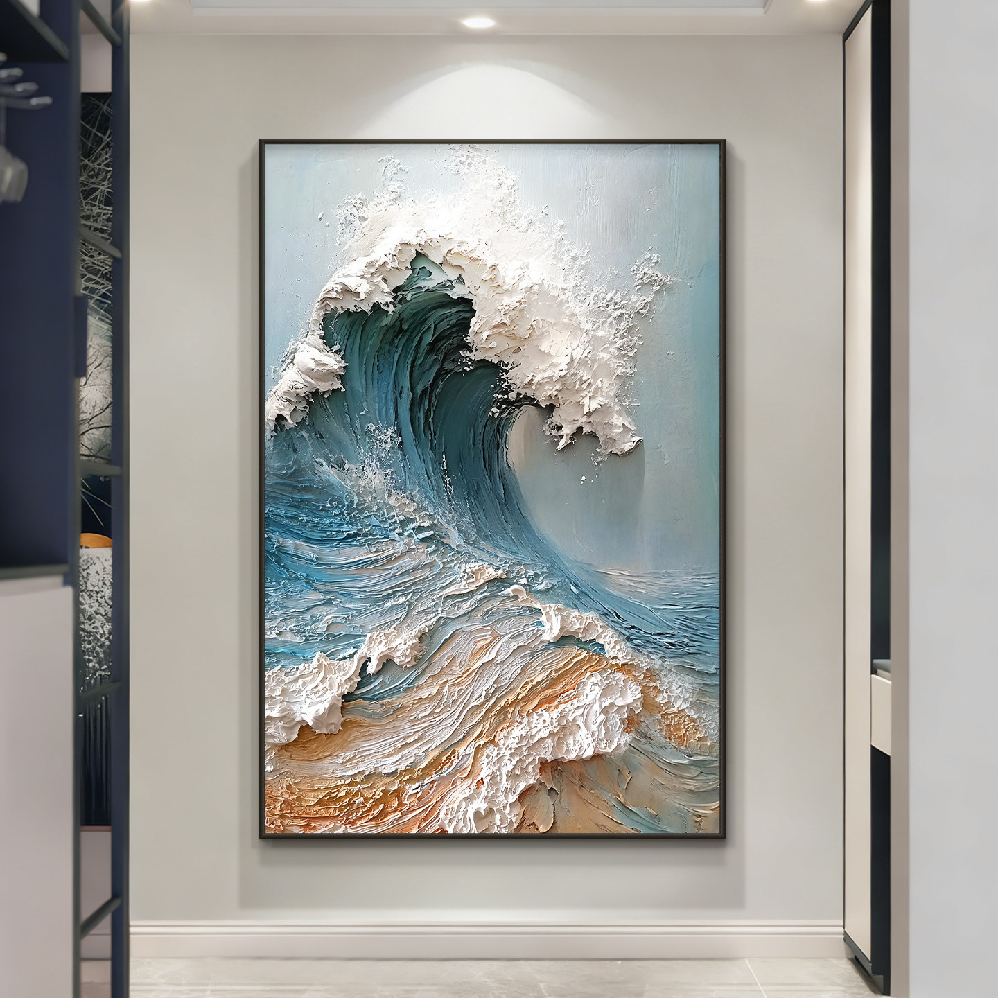 风生水起入户玄关装 饰画轻奢高级感客厅走廊过道挂画手绘油画壁画