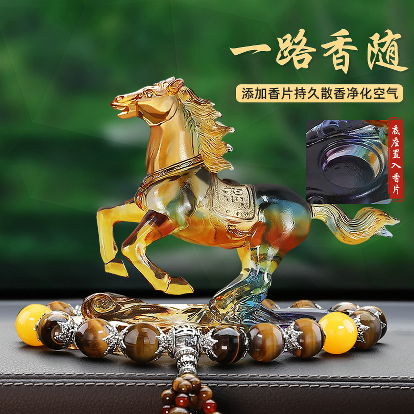 高档车载摆件12生肖马车内中控台装 好礼品 饰品香水座福马招财男士
