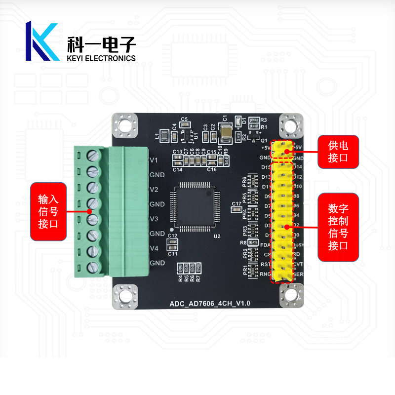 200K采样率同步采集 多通道4路16位ADC数据采集模块 AD7606 4模块