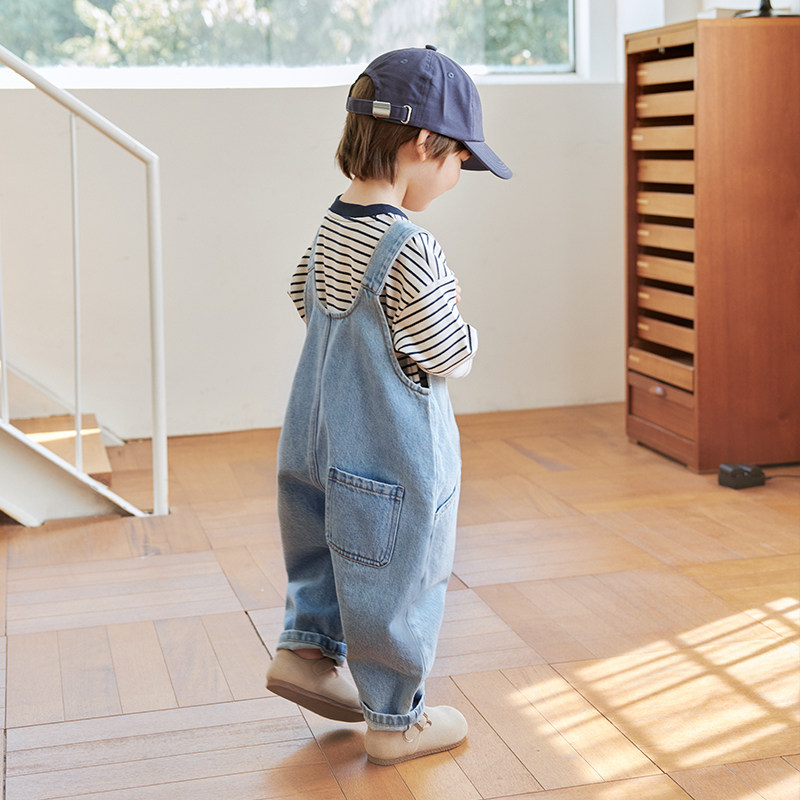 儿童复古百搭宽松牛仔裤 考拉鼻鼻 好穿搭 ·经典 口袋牛仔背带裤
