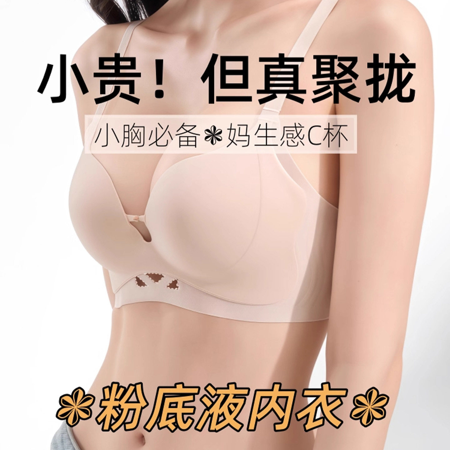 好奇蜜斯性感无痕内衣女聚拢小胸显大无钢圈防下垂文胸罩套装 黑薄