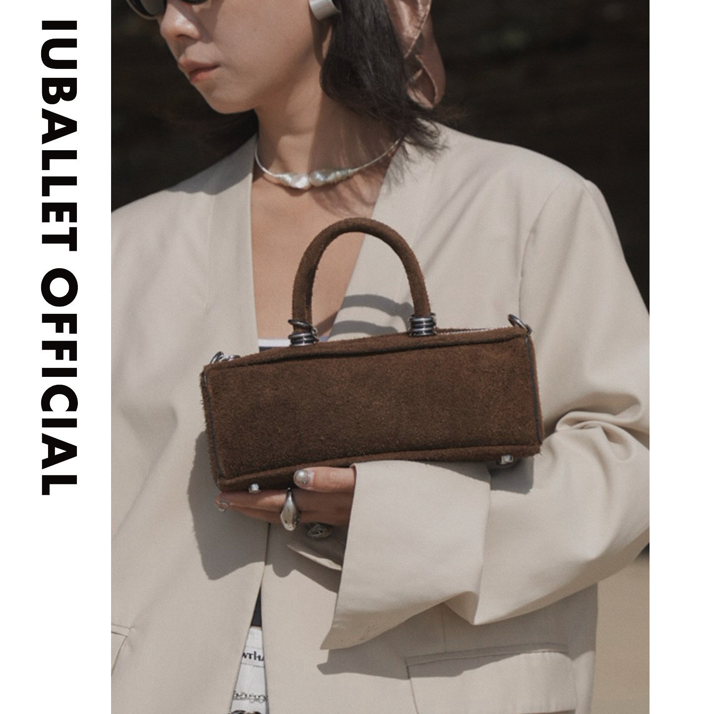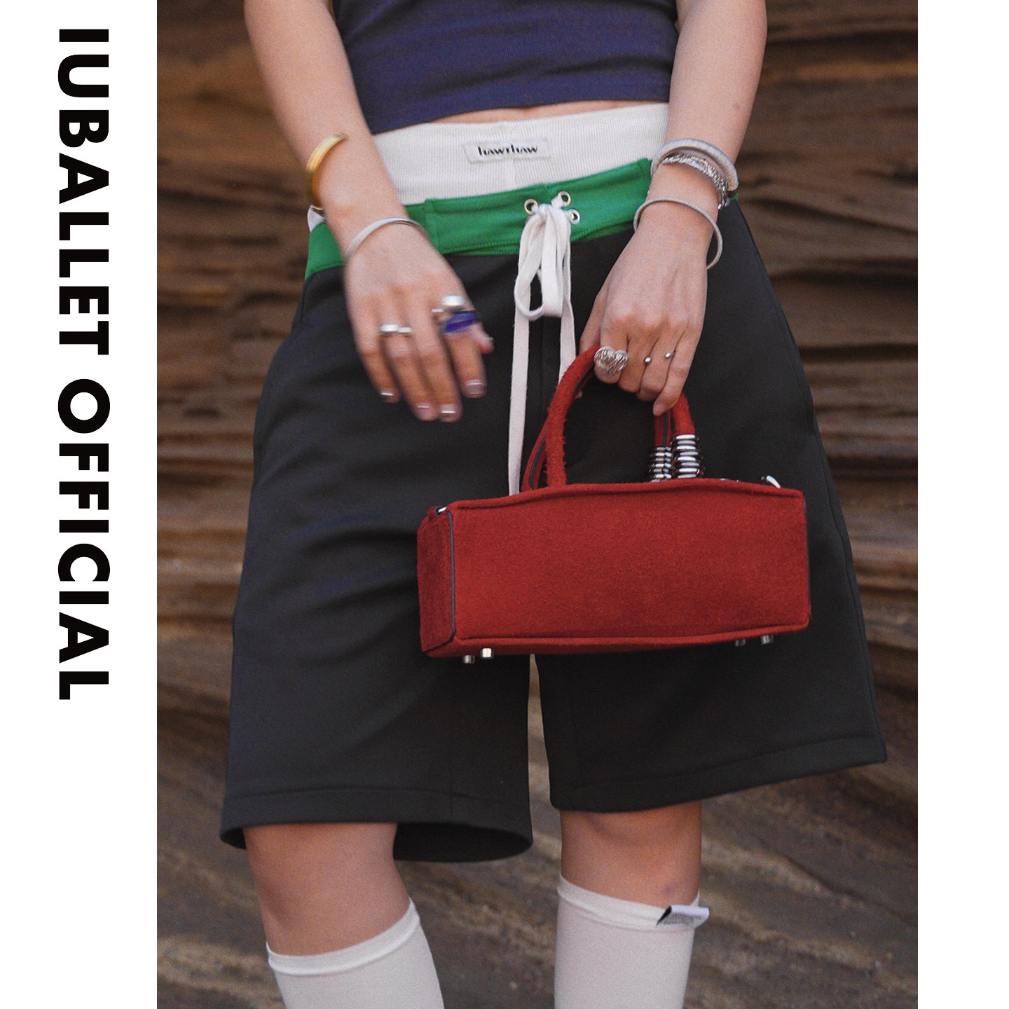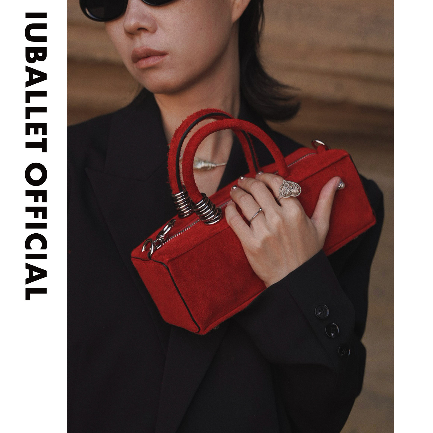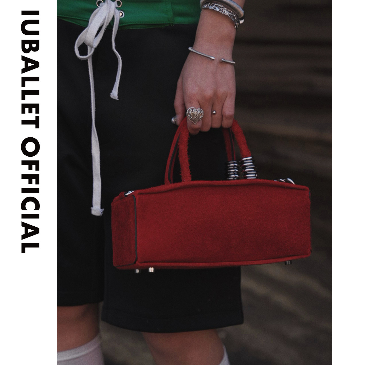 IUBALLET初简情人礼物小众设计红色法棍包女金属装 饰小方包手提包