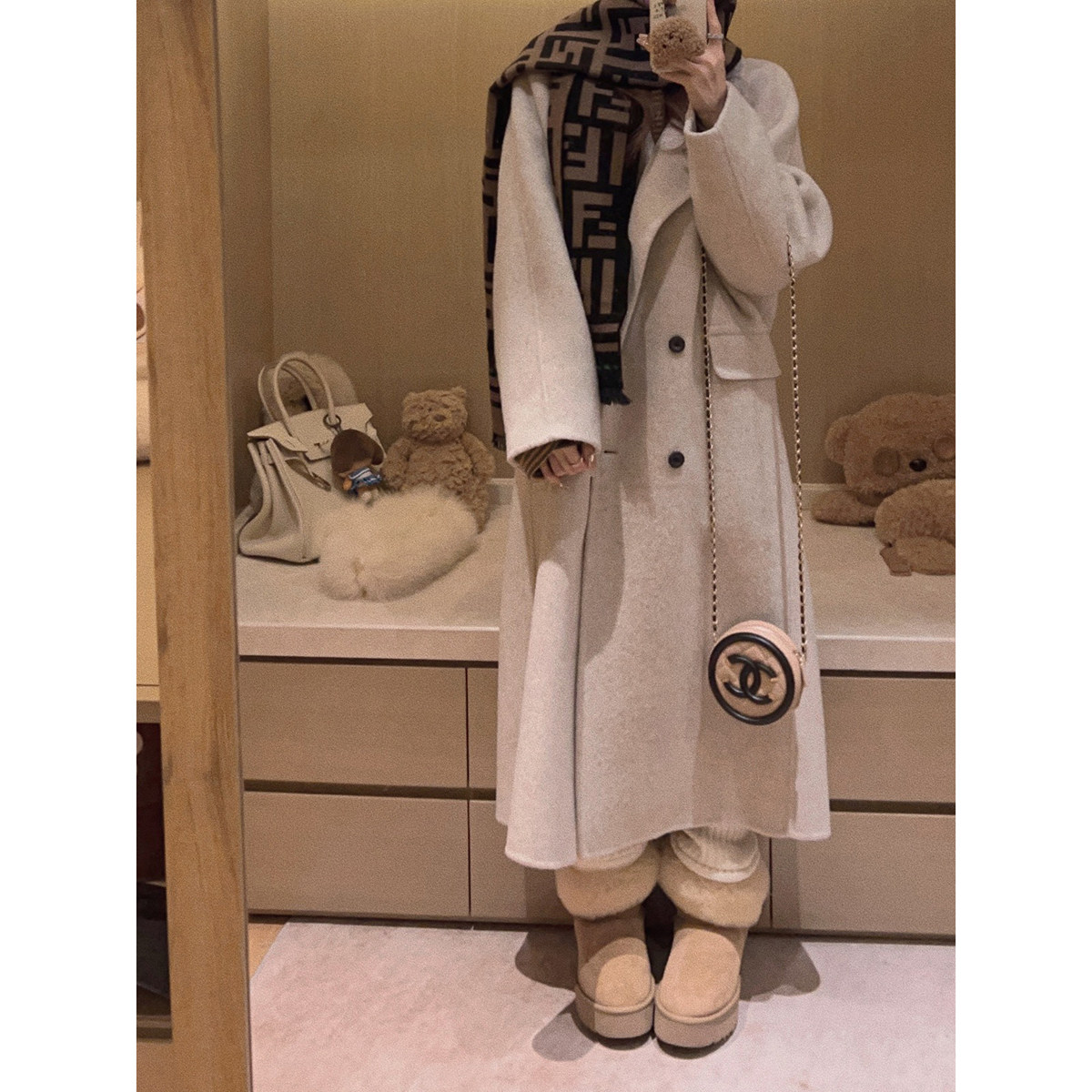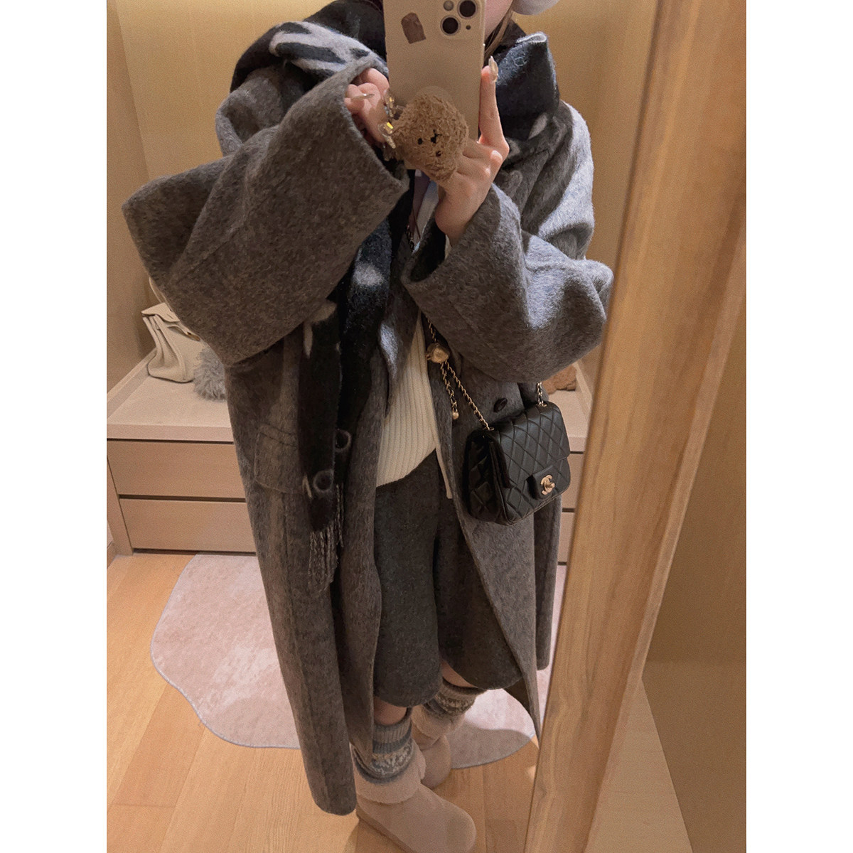 双面呢大衣外套 Yukiss 加厚中长款 70绵羊毛 慵懒